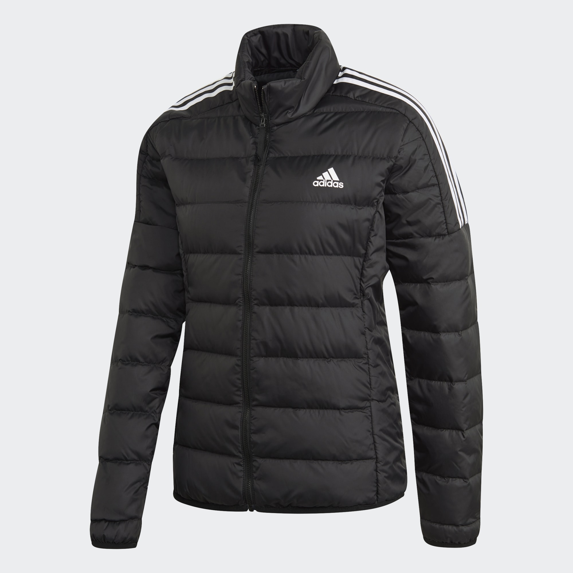 Užite si ľahké teplo páperia v adidas bunde Essentials Down Jacket. Páperové prepážky udržiavajú teplo. Klasické detaily s 3 prúžkami jej dodávajú streetový štýl.