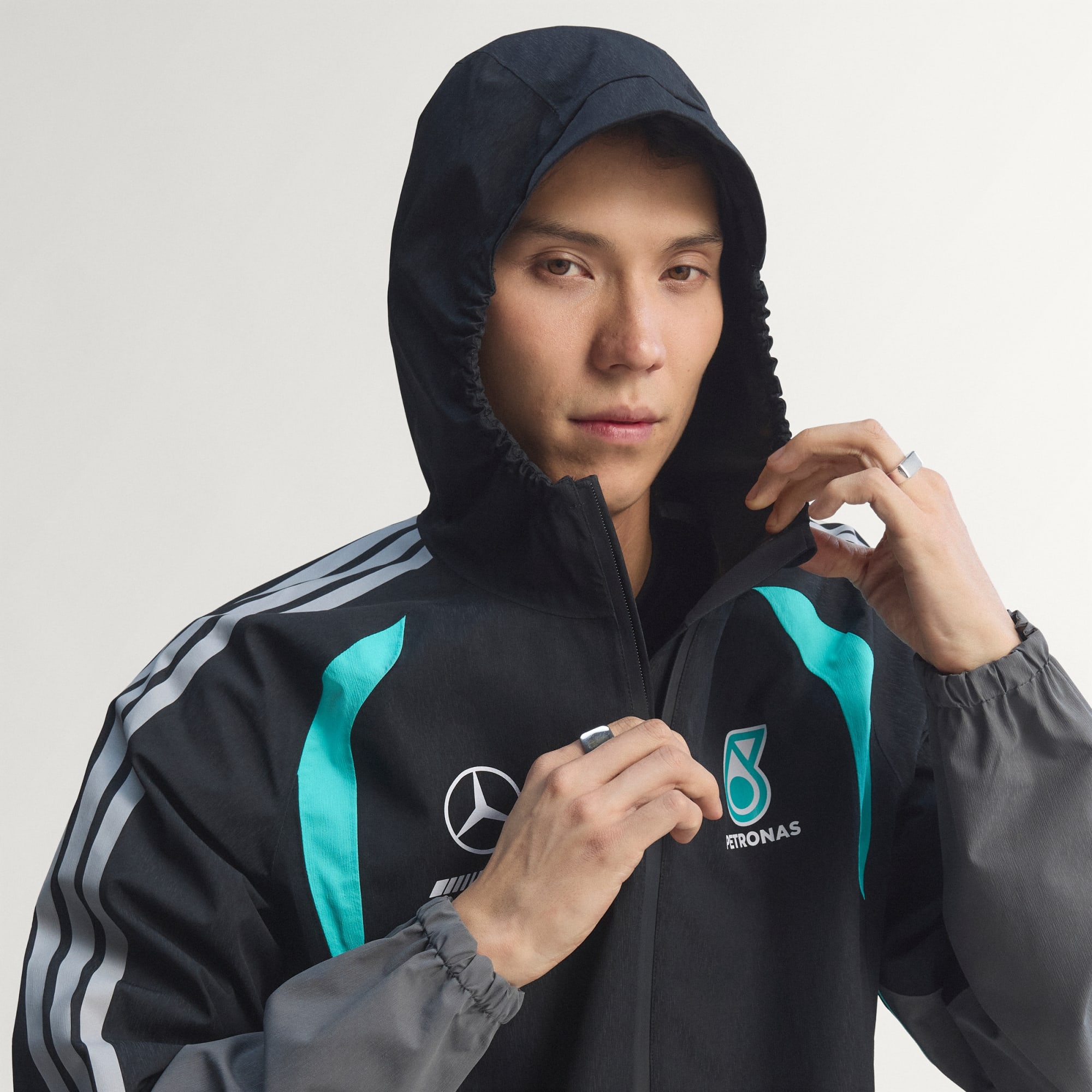 Bunda Mercedes-AMG Petronas Formula 1 Team Mechanics Rain je navrhnutá pre tých, ktorí chcú s istotou odolávať nepriazni počasia. Či už ste pri trati alebo sa prechádzate ulicami mesta, táto bunda vám pomôže zostať v suchu a pohodlí. Je precízne vyrobená a má úplne podlepené švy, ktoré vás dokonale ochránia pred nepriaznivým počasím. Univerzálna zbaliteľná kapucňa vám umožní bez problémov sa prispôsobiť meniacim sa podmienkam. Táto bunda s klasickým strihom a zapínaním na zips je štýlová a funkčná zároveň. Materiál dobby jej dáva nádych sofistikovanosti a vďaka technológii CLIMA365 vás pri športe nič nezaskočí. Na tejto praktickej a štýlovej bunde je tímové logo, ktorým vyjadríte podporu tímu. Vychutnávajte si aktívny životný štýl v kvalitnom oblečení od adidas.