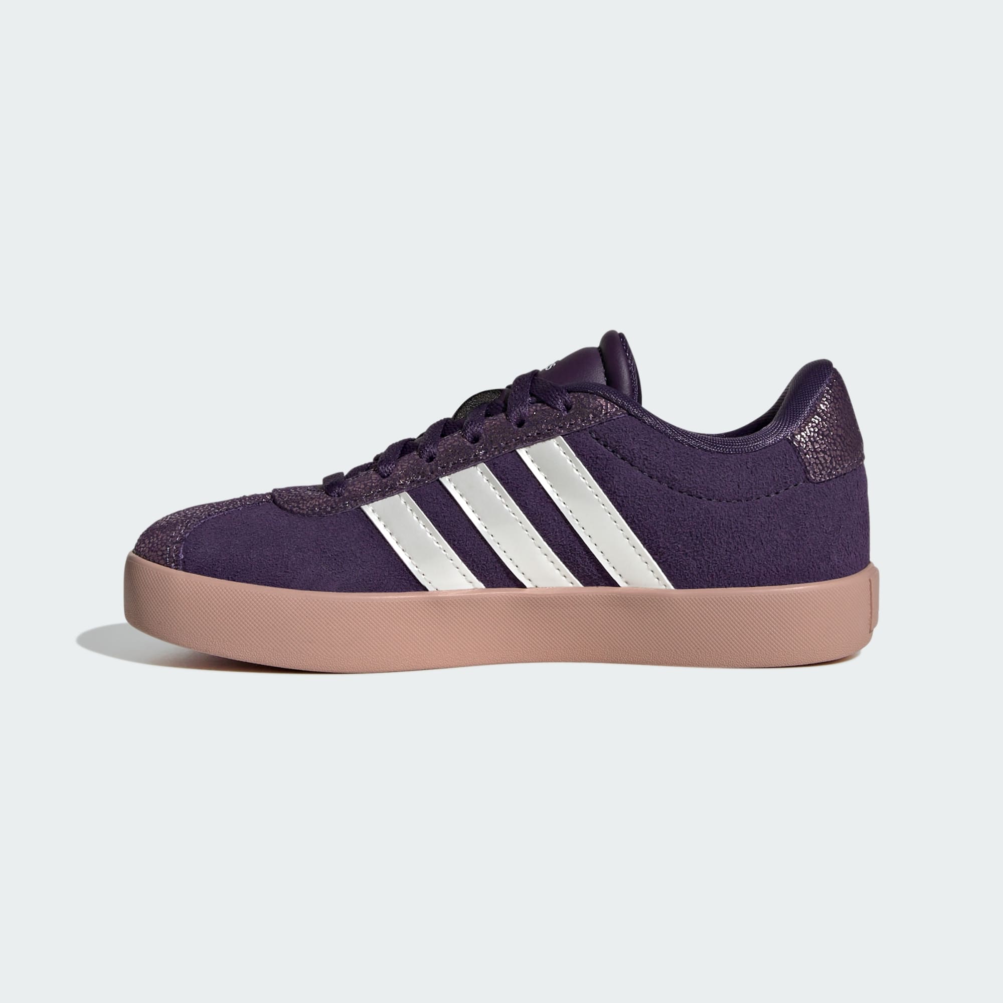 Detské topánky adidas VL Court 3.0, ktoré boli vytvorené pre dobrodružstvá, sú ideálne na každodenné hranie. Ikonická T-špička a klasické šnurovanie im dodávajú cool športový štýl, ktorý si malí objavitelia okamžite zamilujú. Mäkký zvršok zo semišu a syntetickej kože spolu s jemnou textilnou podšívkou zaručuje pohodlie počas celého dňa plného aktivít. Špeciálna gumená podrážka, ktorá nezanecháva šmuhy, dáva deťom slobodu behať a hrať sa bez obáv z čiernych stôp na podlahe.