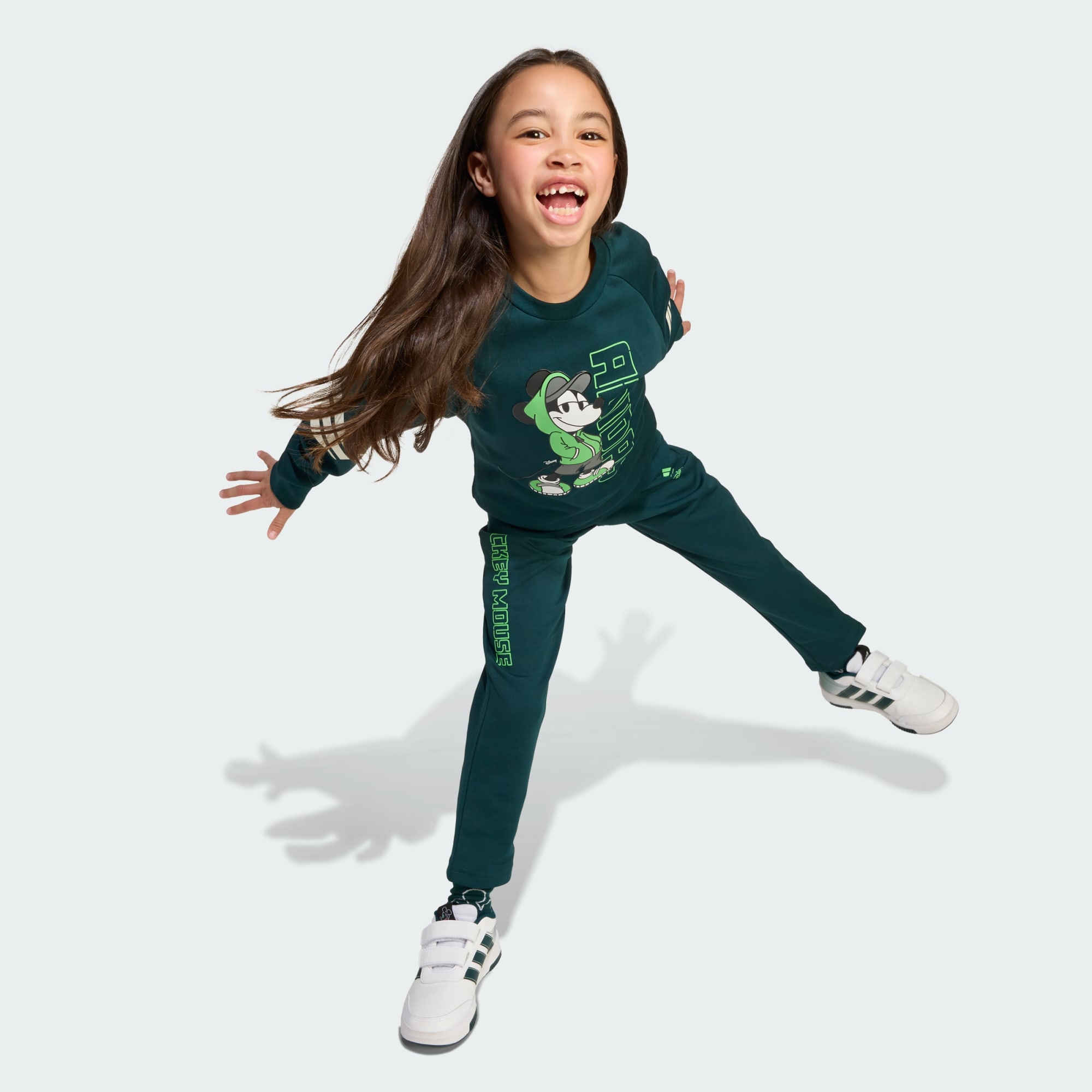 Tvoje dieťa si zamiluje pohodlie a štýl tejto detskej teplákovej súpravy od adidas a Disney, ktorá obsahuje zábavnú verziu Mickey Mousa. Jemný športový úplet, ktorý je ideálny na aktívne hranie alebo príjemný oddych, udrží deti v pohodlí po celý deň. Veľké výrazné 3 pásiky na rukávoch ukazujú klasický symbol novým spôsobom.