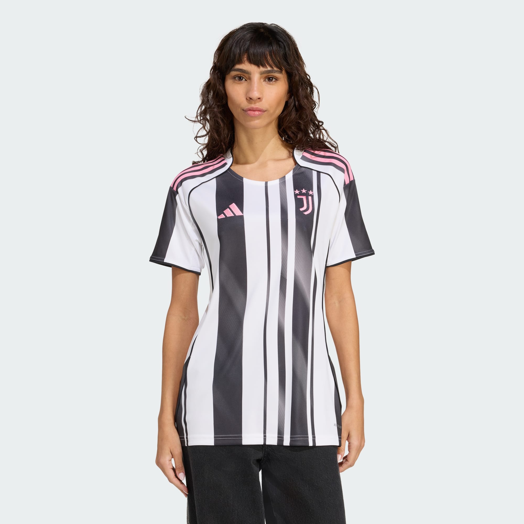 Moderná verzia ikonických prúžkov Juventusu v štýle talianskej módy s nestarnúcimi ružovými detailmi.
