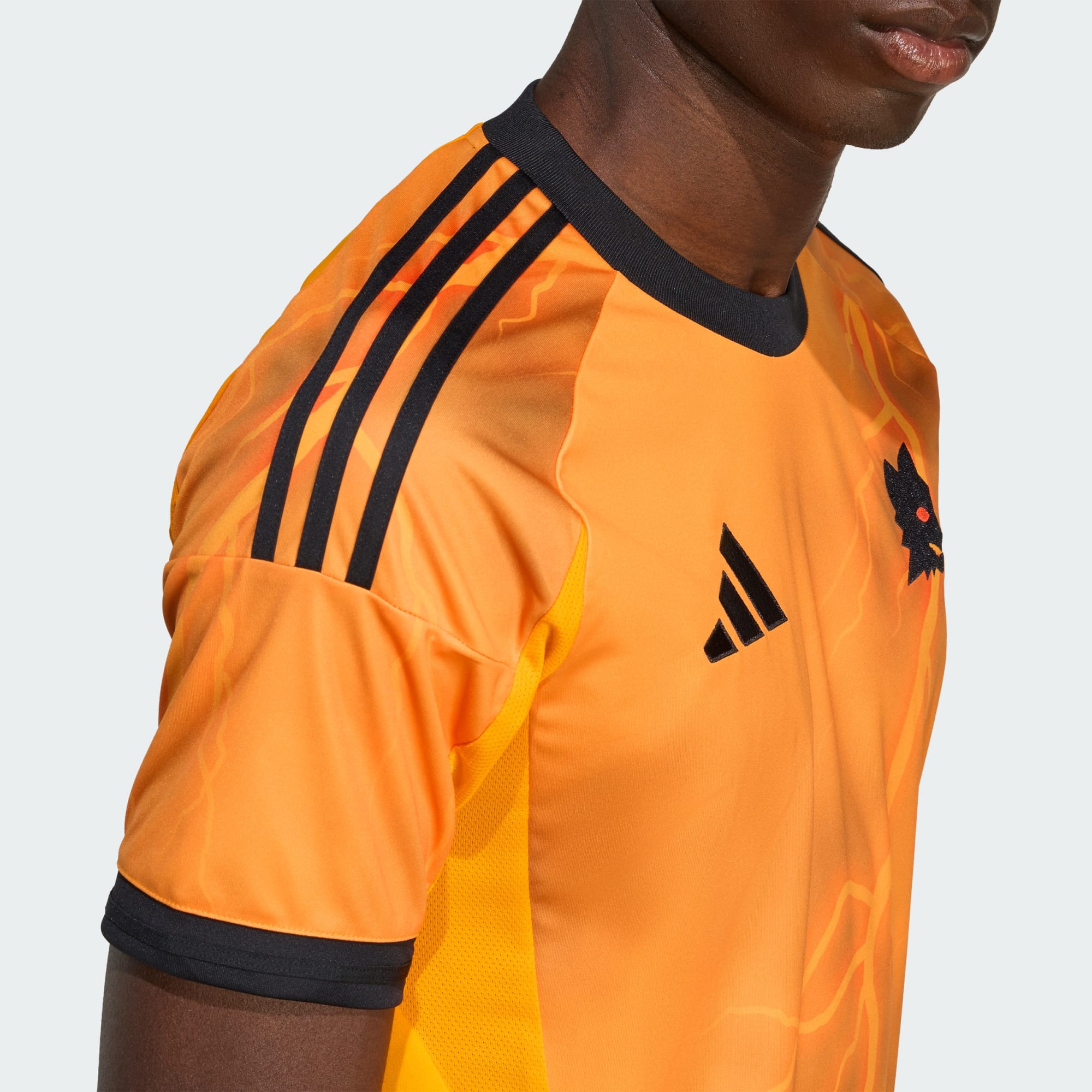 Ochranca večného mesta, Jupiter, je stredobodom pozornosti tohto futbalového dresu AS Roma od značky adidas. Dynamický dizajn, rozpolený bleskom zoslaným z nebies, umožní fanúšikom počas zápasu vyniknúť. Technológia Aeroready regulujúca vlhkosť a jemný materiál spolu zaisťujú božský pocit pri obliekaní.