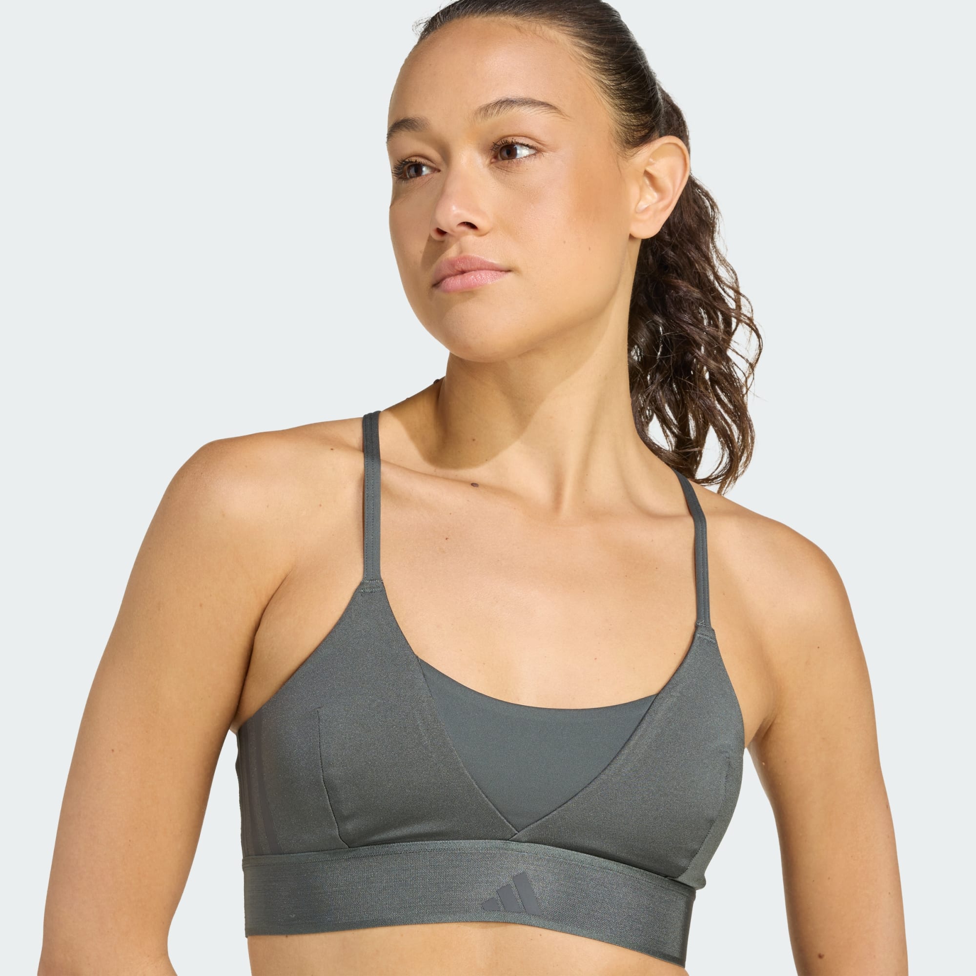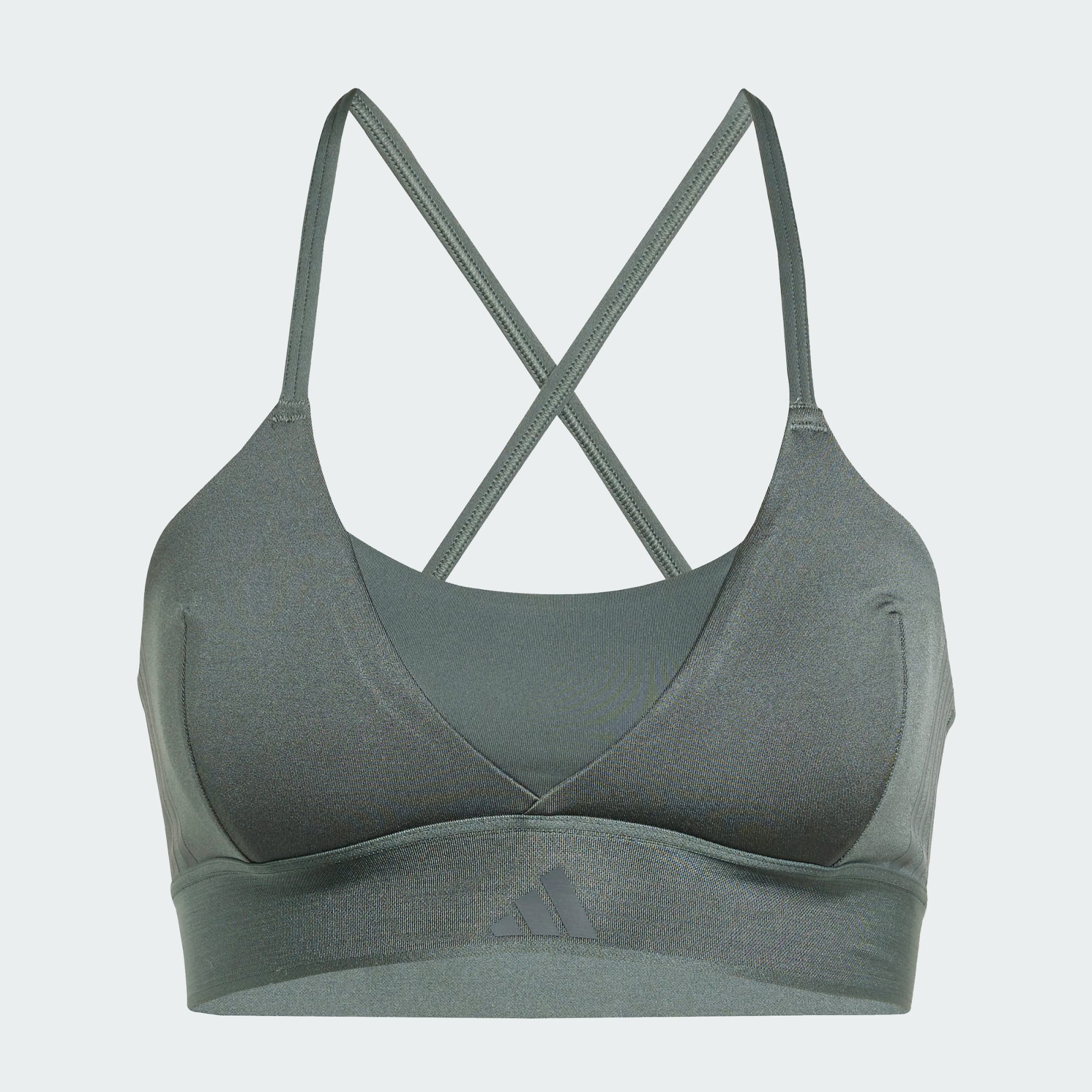 Sporty, but make it cute. The adidas Hyperglam Shine Bralette is an easy pullover bra for yoga, Pilates, barre and other low-impact workouts. CLIMACOOL wicks and disperses sweat for cool, dry and distraction-free performance. Criss-cross straps make it look stylish underneath open-back tops, and shine panels add a touch of glam. CLIMACOOL helps you manage sweat with materials that wick and manage sweat quickly. Its fast-dry fibres give you a fresh-skin feel.