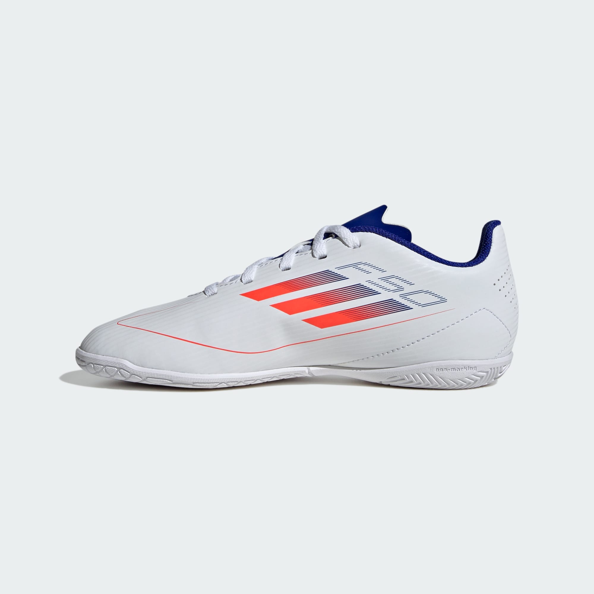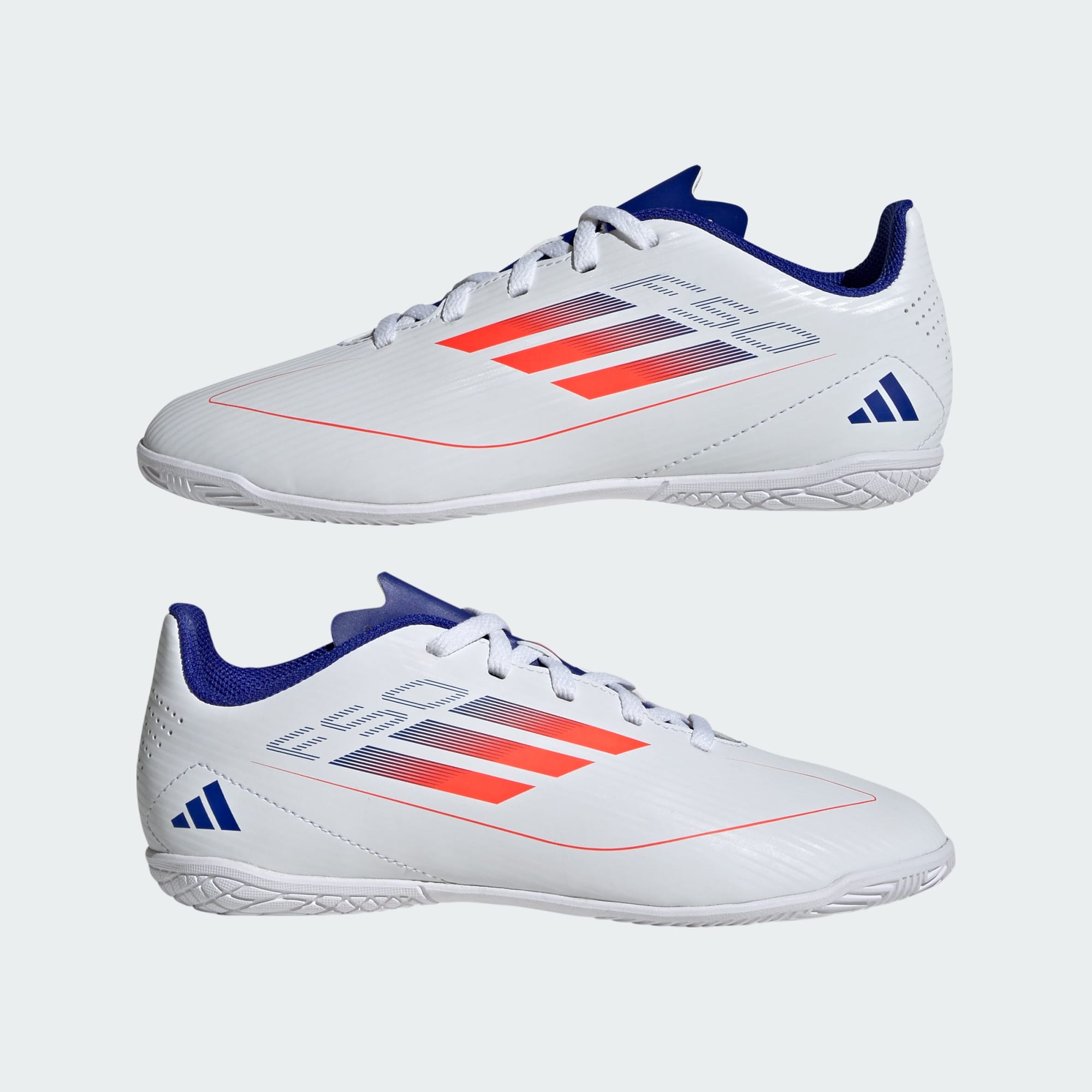 Kopačky adidas F50 dokazujú, že rýchlosť oslobodzuje. Odomkni potenciál svojej akcelerácie a pohybu. V tejto juniorskej klubovej verzii adidas so štruktúrovaným syntetickým zvrškom a perforovaným jazykom spoznáš, čo je to pohodlie. Navyše sa nesú na priľnavej gumenej podrážke, ktorá ti umožní byť o krok vpred pred súpermi na plochých indoorových povrchoch.