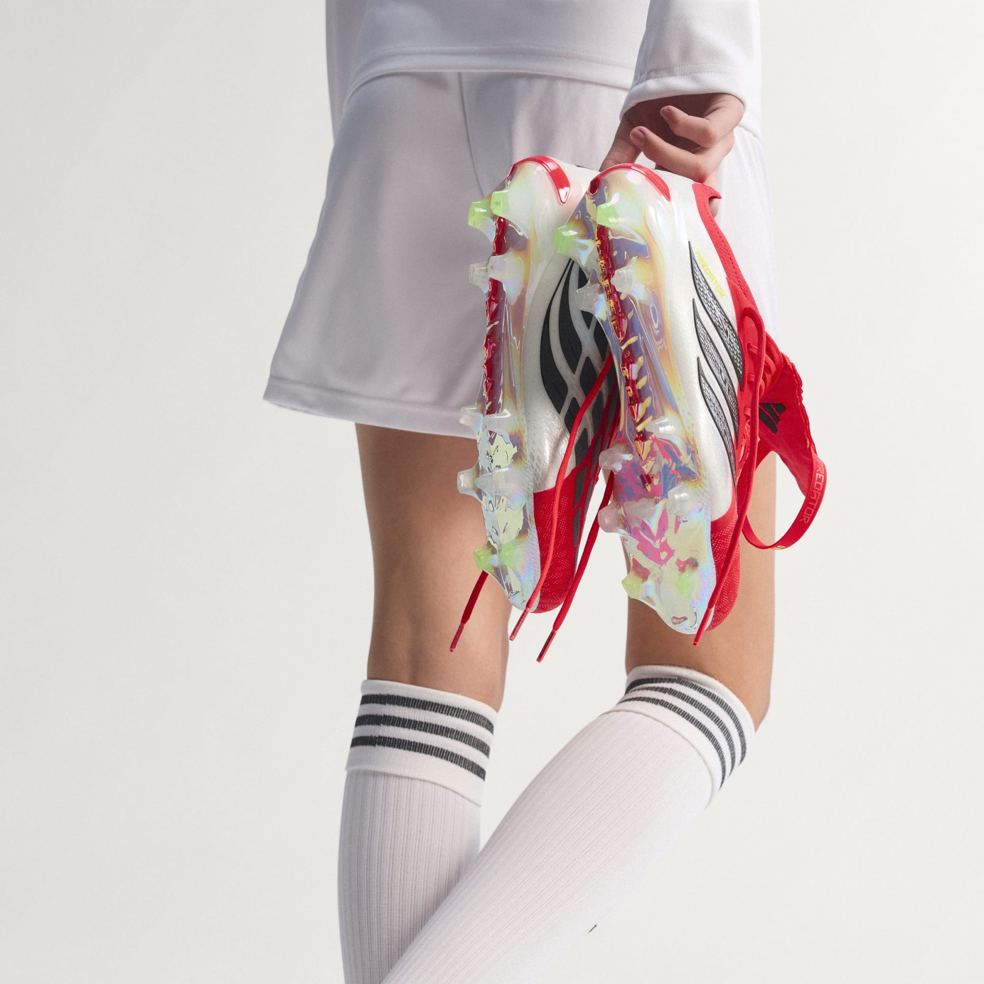 Navrhnuté na pevný povrch, poskytujú spoľahlivú priľnavosť a záber bez ohľadu na to, či je ihrisko suché alebo vlhké. Mechanicky tkaný golier Primeknit sa prispôsobí tvaru nohy a ponúka pohodlie ako ponožka, zatiaľ čo sklopný jazyk dodáva klasický vzhľad a hladký úderový povrch pre silné a presné kopy.