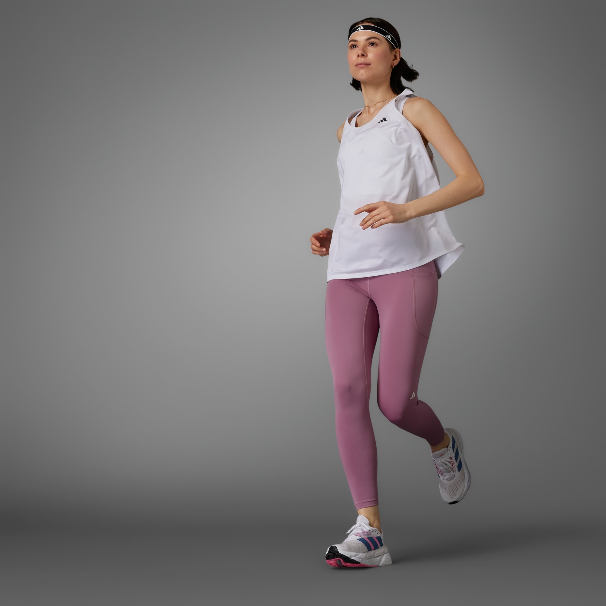 Či už ideš s komunitou, alebo len ty sama, nie je nad nával radosti, ktorý sa dostaví počas behu. Ale jedna vec je istá. Ak si to chceš čo najviac užiť, pohodlie a spevnenie sú prvoradé. Najlepšie bežecké legíny sú tie, o ktorých ani nevieš, keď sa štveráš do kopca a naberáš rýchlosť pri šprintoch. Táto ľahká elegantná verzia DailyRun 7/8 ti zabezpečí spoľahlivé krytie a nenechá ťa v štichu. Majú vysoký spevňujúci pás s prispôsobiteľnou šnúrkou na stiahnutie, vyznačujú sa absorpčnou úpravou AEROREADY, ktorá udržiava pokožku v suchu aj vo vyšších teplotách, a nechýbajú im ani praktické vrecká umožňujúce rýchly prístup k smartfónu či energetickým gélom.