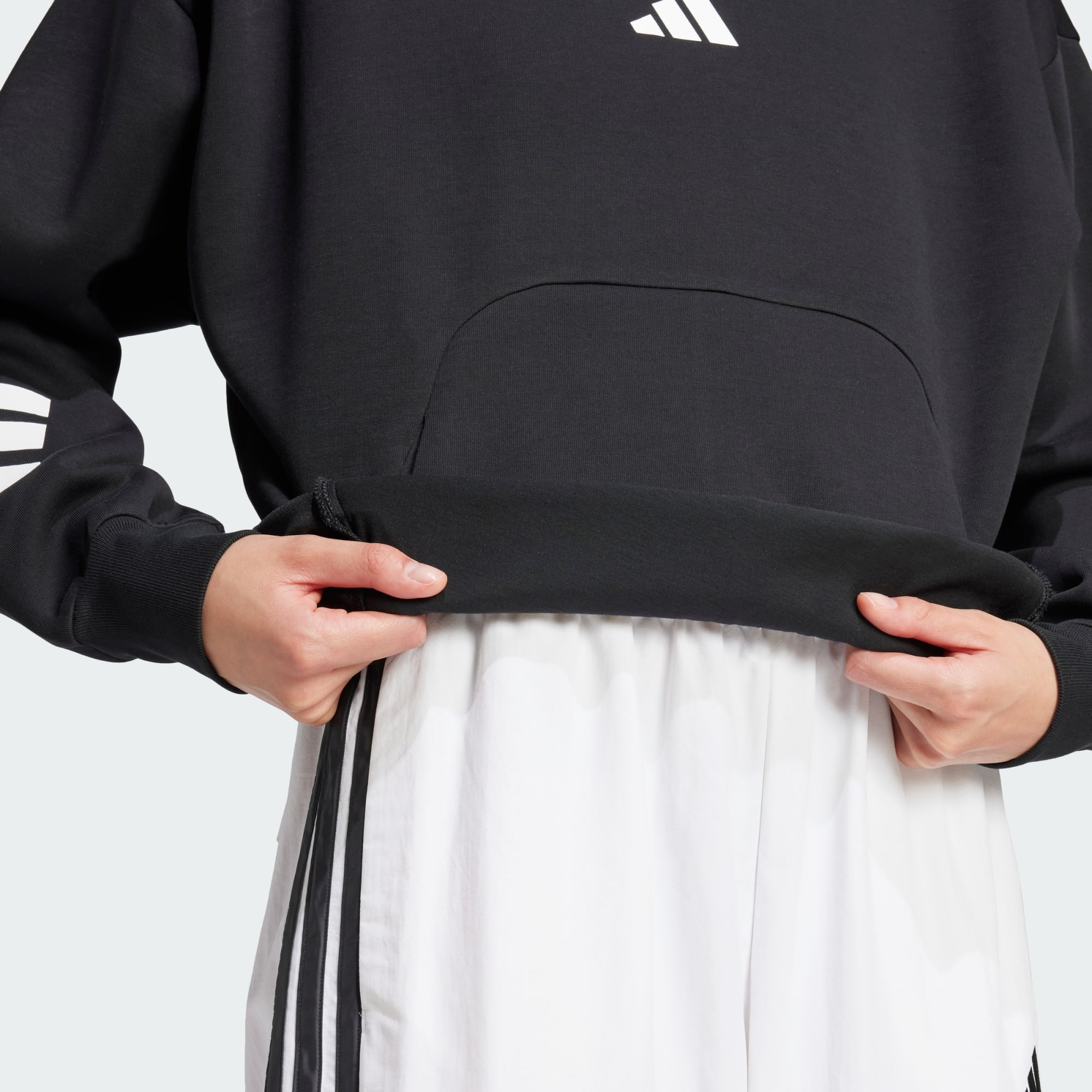 Táto moderná minimalistická mikina s kapucňou patrí do každého ležérneho šatníka. Je vyrobená z jemného pohodlného materiálu, takže sa skvelo hodí na víkendové dobrodružstvá aj na oddych doma na gauči. Vyznačuje sa vrúbkovanými manžetami, ktoré držia rukávy na mieste, a jej vzhľad dotvárajú kultové 3 prúžky a logo adidas. Recyklované materiály nám umožňujú zužitkovať to, čo už existuje, čím prispievame k redukcii odpadu. Aj obnoviteľné materiály znamenajú, že môžeme byť menej závislí od vyčerpateľných zdrojov. Naše produkty vyrobené zo zmesi recyklovaných a obnoviteľných materiálov ich obsahujú minimálne 70 %.