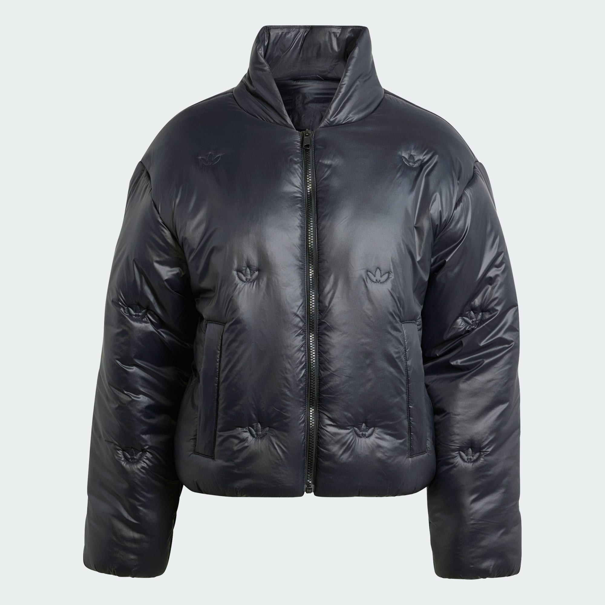 Embrace the chill in plush comfort with this adidas puffer jacket. This luxurious design has all the practical elements you need to stay cosy: a durable nylon build, soft duvet fill and snug front welt pockets. But it's also got subtle details that'll make you swoon. The allover embroidered Trefoil pattern and branded zipper pull work together to provide that signature adidas touch. Stylish yet functional, this jacket is a must-have in any wardrobe. Made with 100% recycled materials, this product represents just one of our solutions to help end plastic waste.