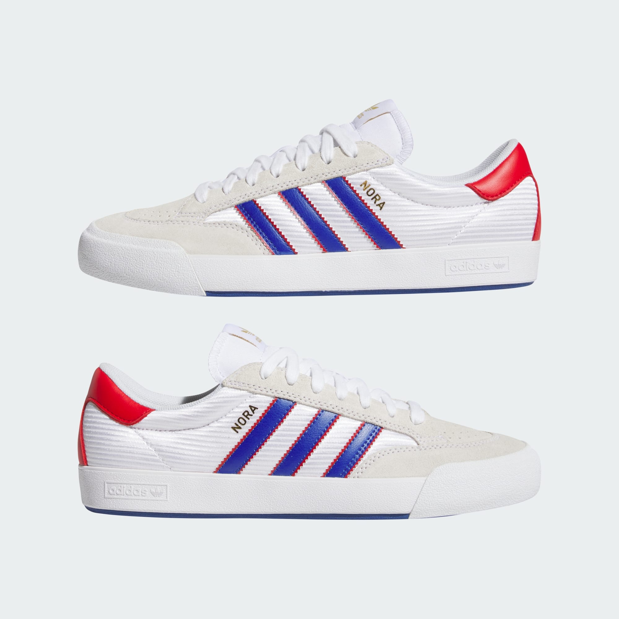 Charakteristické tenisky adidas od Nory Vasconcellos spájajú vintage tenisovú estetiku s premyslenými dizajnovými prvkami a vzdávajú hold jej koreňom aj prínosu pre svet skateboardingu. Model Nora, vyrobený so semišovým a textilným zvrškom, ponúka kombináciu odolnosti a priedušnosti s pridanou dvojvrstvovou špičkou a vsadenou podrážkou. Zlatisté logo a zvlnená päta dotvárajú dizajn, ktorý v štýle minulých dekád a s osobitým rukopisom Nory vzdáva hold archívom a odráža jej osobný štýl.