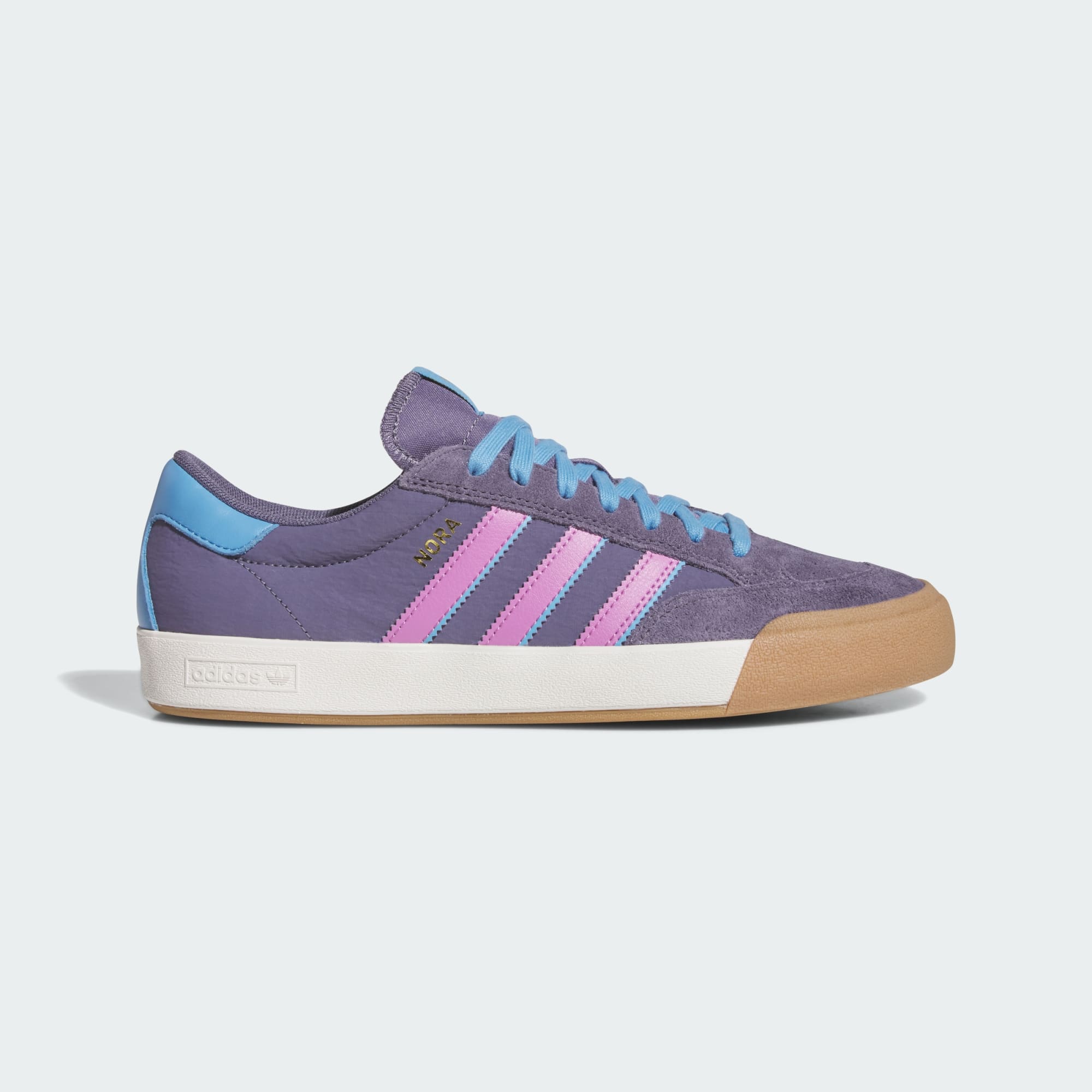 Charakteristické tenisky adidas od Nory Vasconcellos spájajú vintage tenisovú estetiku s premyslenými dizajnovými prvkami a vzdávajú hold jej koreňom aj prínosu pre svet skateboardingu. Model Nora, vyrobený so semišovým a textilným zvrškom, ponúka kombináciu odolnosti a priedušnosti s pridanou dvojvrstvovou špičkou a vsadenou podrážkou. Zlatisté logo a zvlnená päta dotvárajú dizajn, ktorý v štýle minulých dekád a s osobitým rukopisom Nory vzdáva hold archívom a odráža jej osobný štýl.