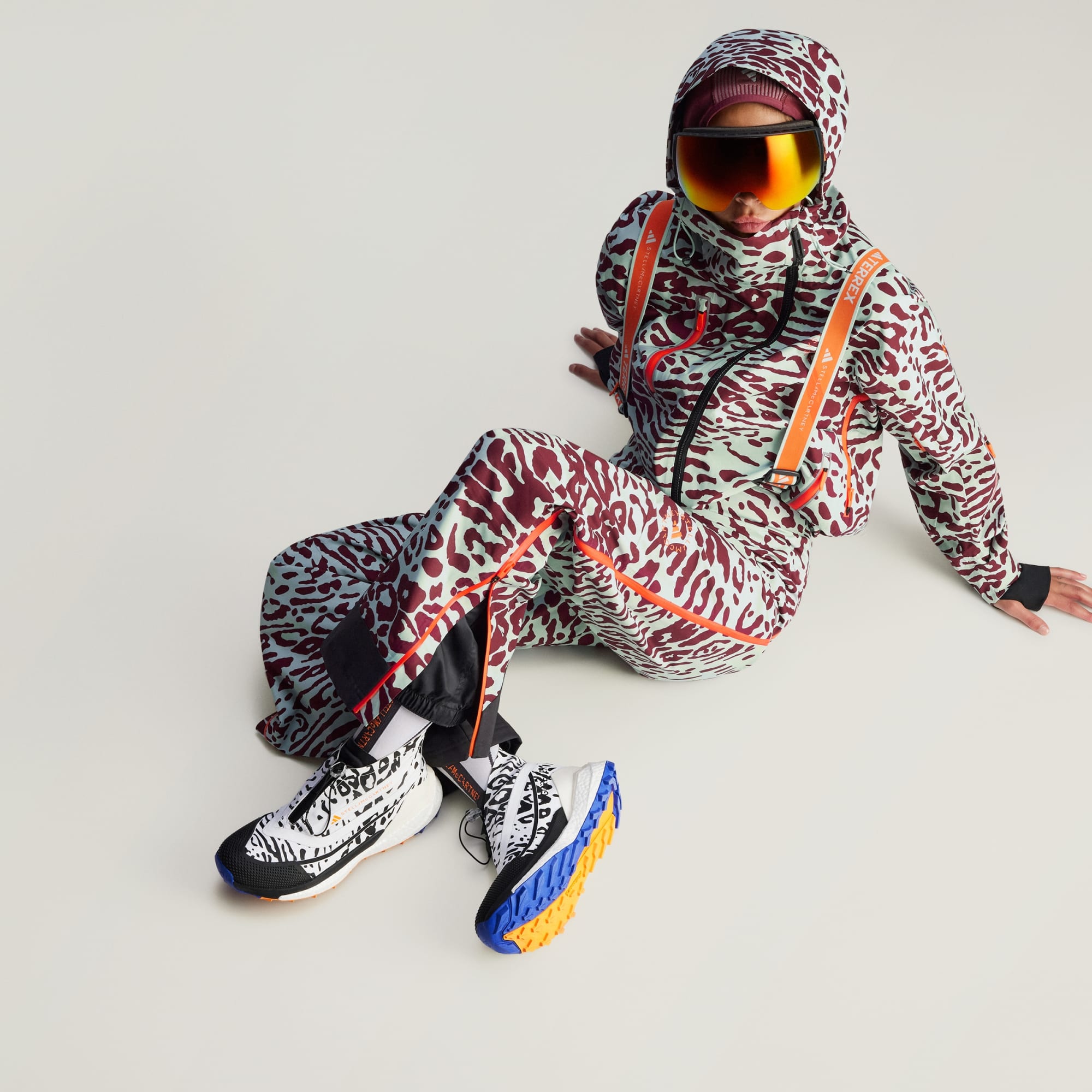 ADIDAS BY STELLA MCCARTNEY A TERREX OPÄŤ SPOJILI SILY A PRINÁŠAJÚ ĎALŠIU DÁVKU ZIMNEJ ŠPORTOVEJ VÝBAVY, V KTOREJ SA SPÁJA ŠPIČKOVÝ VÝKON A MÓDA. MÁ VÝRAZNÚ ZVIERACIU POTLAČ A HREJIVÉ VRSTVY. MNOHÉ KÚSKY SÚ VYROBENÉ ZO ZMESI RECYKLOVANÝCH MATERIÁLOV.