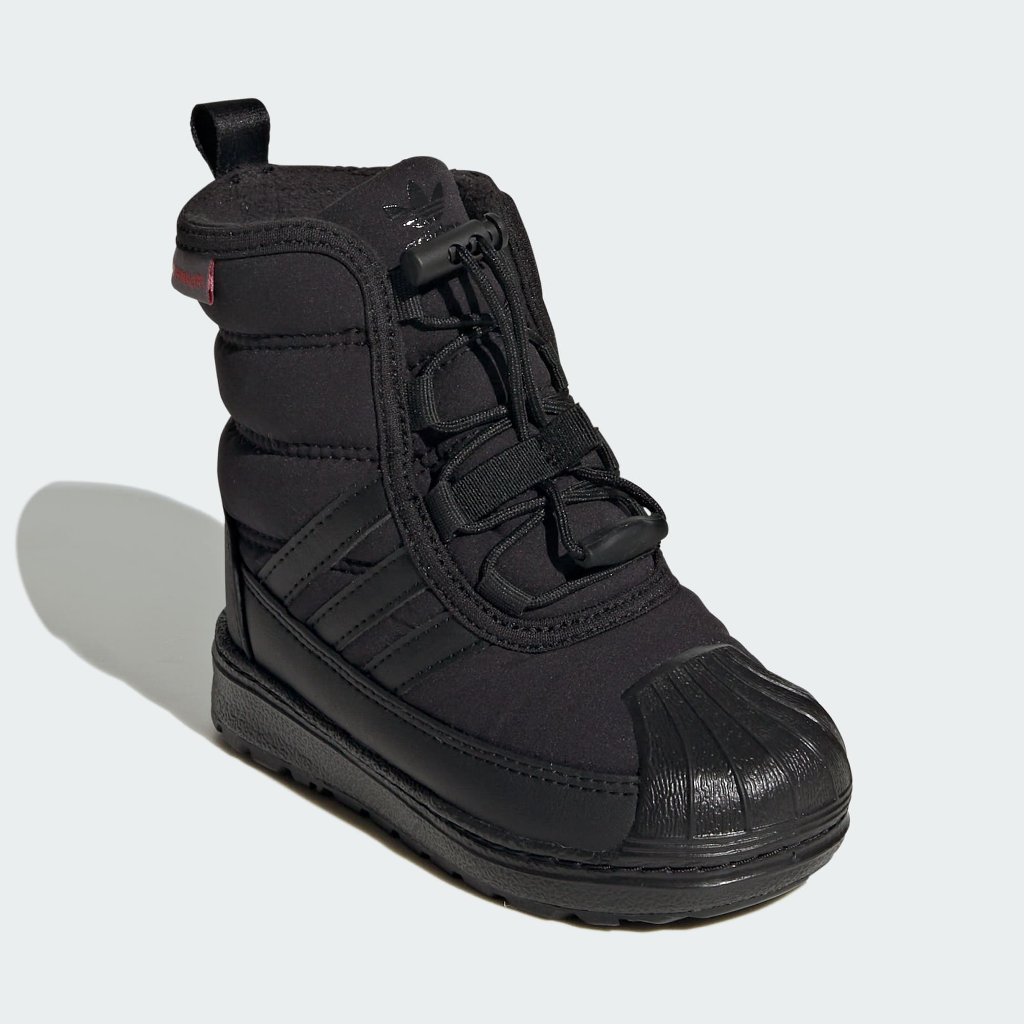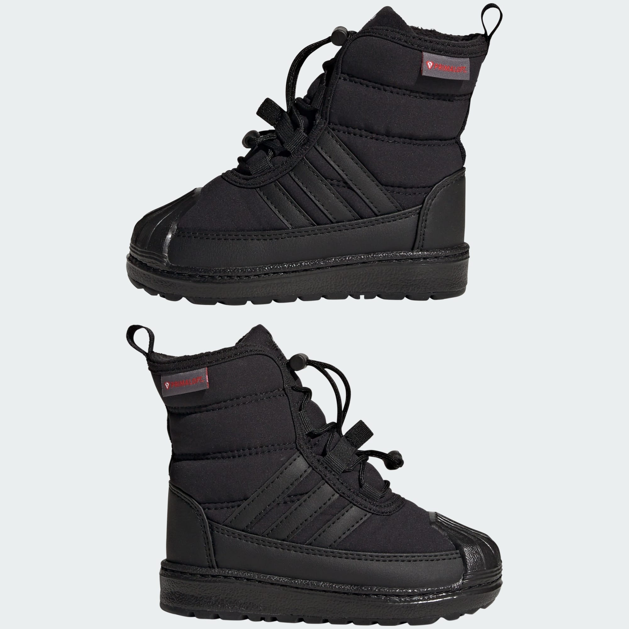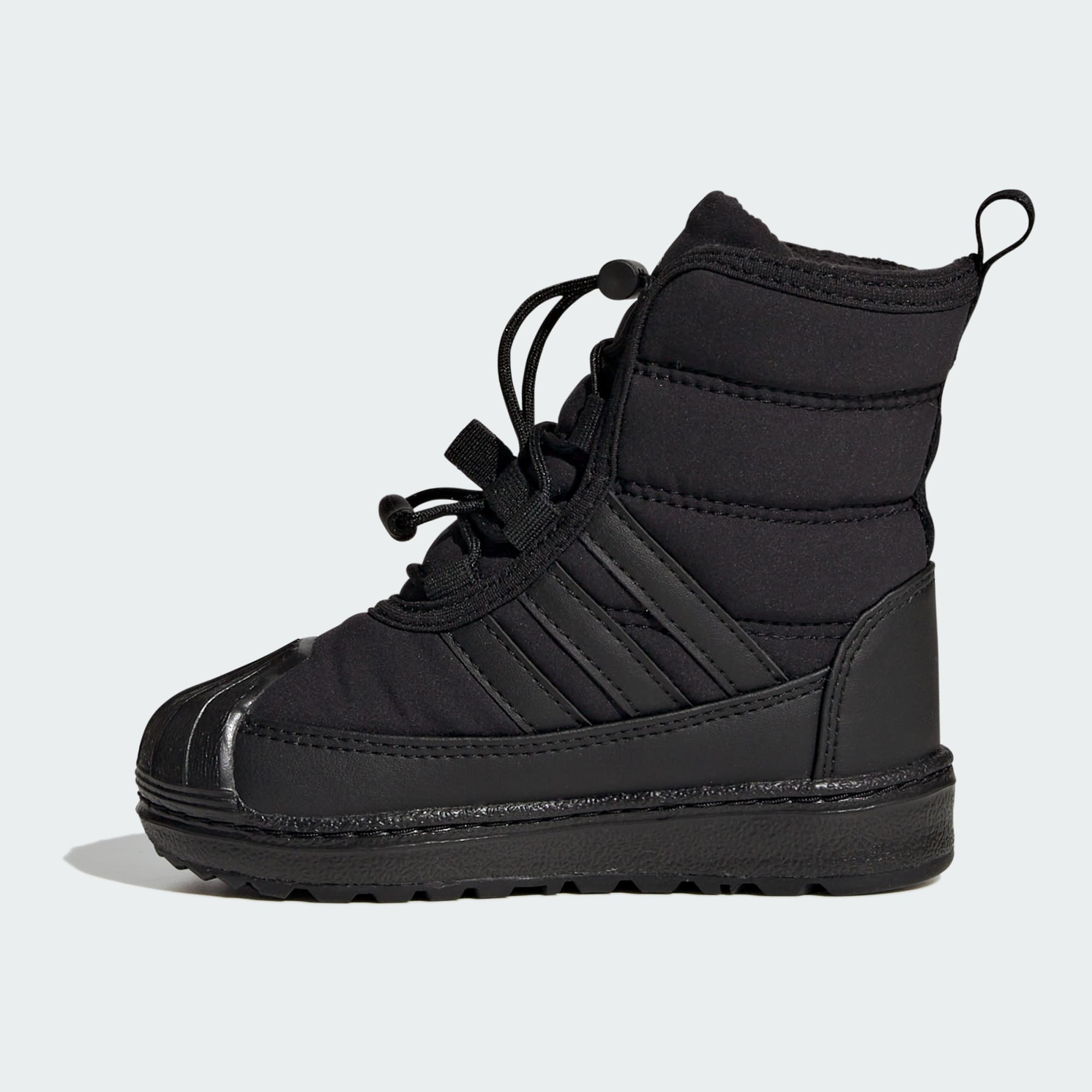 Klasické tenisky adidas Superstar sme uložili na zimný spánok a táto detská zimná obuv sa postavila na ich miesto. Vyznačuje sa hrejivou izoláciou PrimaLoft®, ktorá udržiava chodidlá v teple aj vo vlhkých podmienkach, a ak vonku začne primŕzať, nechýba jej ani gumená podrážka zabezpečujúca pevnú zem pod nohami. Tvoje dieťatko bude v teple a bezpečí. To znamená viac zábavy pre každého. Zvršok tohto produktu obsahuje minimálne 50 % recyklovaných materiálov. Predstavuje jedno z našich riešení, ktoré pomáhajú eliminovať plastový odpad.