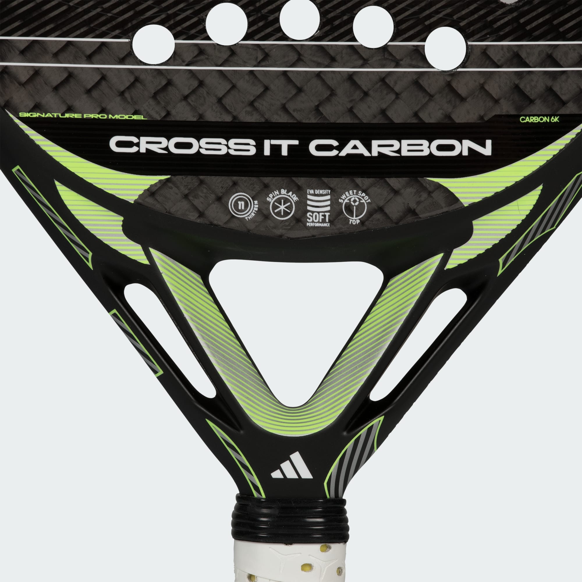 Raketa Cross IT Carbon 2026 je vyrobená tak, aby poskytovala ľahký, responzívny a silný herný zážitok s väčšou kontrolou a presnosťou počas celej padelovej hry. Vďaka technológii adidas Dynamic Air Flow, ktorá znižuje odpor, a tvaru Diamond Oversize, ktorý vytvára väčšiu úderovú plochu, poskytuje stabilitu a intuitívny pocit na kurte. Raketa je vyrobená z materiálu Carbon 6K a spája odolnosť s responzívnym dotykom, čím poskytuje výkon adidas, ktorý s tebou udrží krok pri každej výmene.
