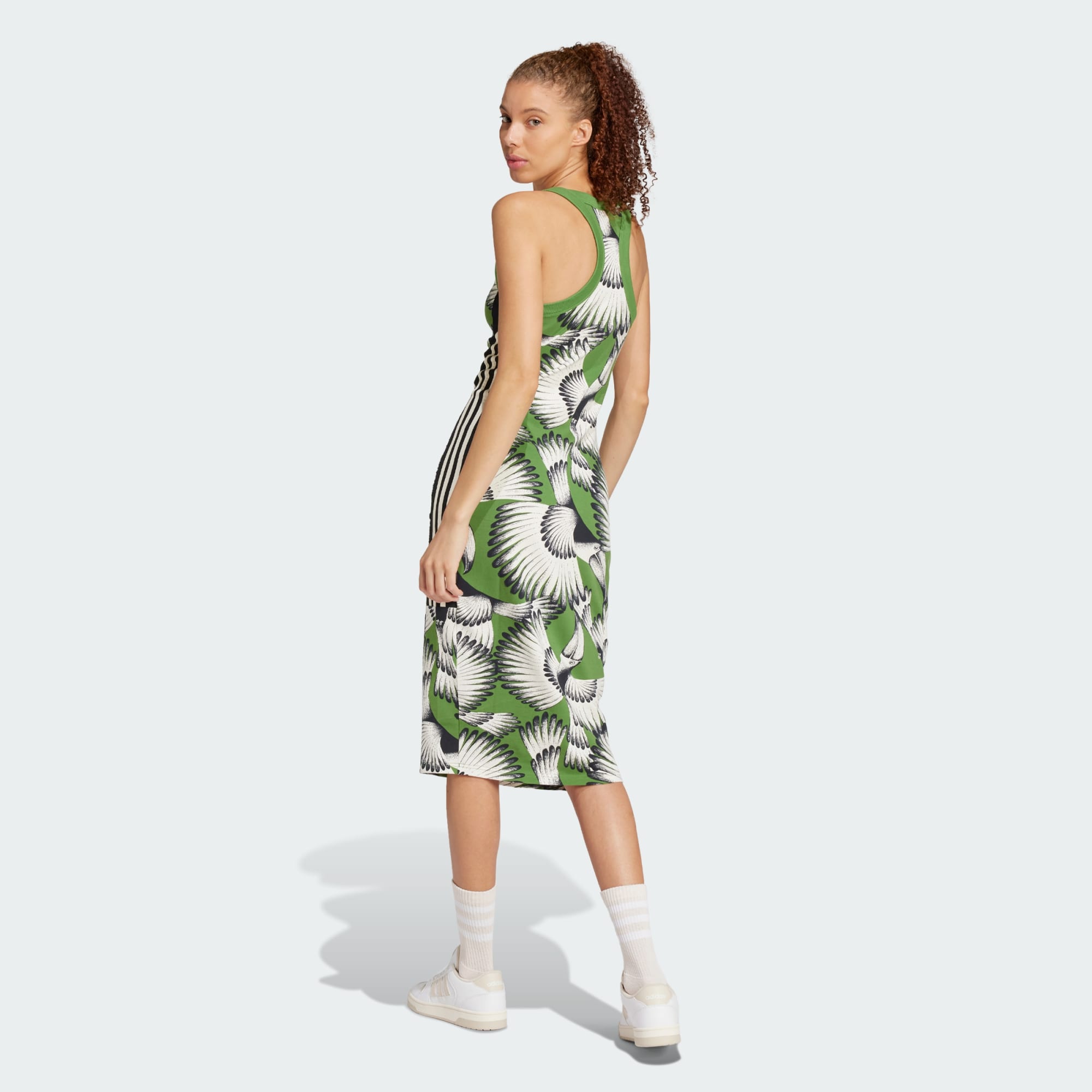 V týchto šatách z dielne adidas x FARM Rio rozhodne zanecháš dojem. Sú inšpirované žiarivými farbami a vzormi trópov a zdobí ich neprehliadnuteľná celoplošná potlač s charakteristickým brazílskym šarmom. Vyrobili sme ich z pohodlného elastického džerseja a majú úzky strih, ktorý zvýrazní tvoju postavu. Skombinuj ich s teniskami na dosiahnutie športového looku alebo si k nim obleč vysoké lodičky a vyraz večer do mesta. Nech už sa rozhodneš akokoľvek, sú ako oáza sebavedomia a sebavyjadrenia.