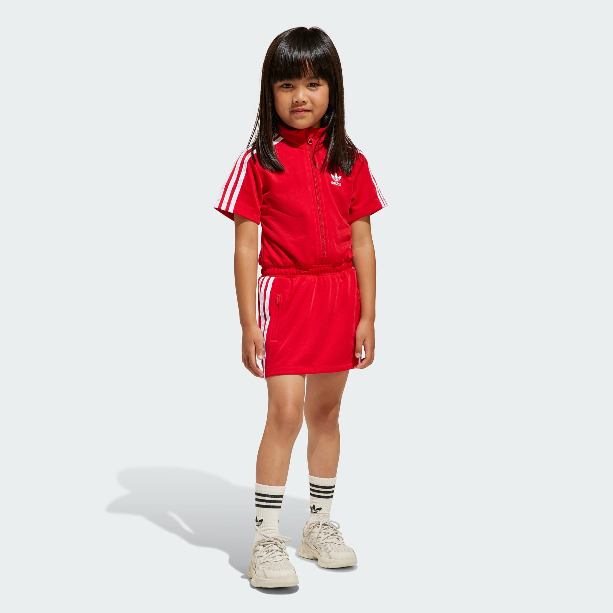 Detské šaty adidas Firebird vyrobené z recyklovaných materiálov.