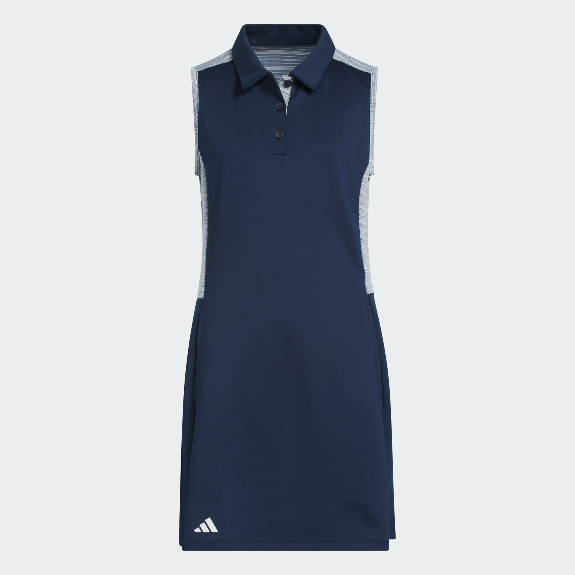 Štýlové golfové šaty s dvojitou látkovou konštrukciou a vreckami pre klasický vzhľad.