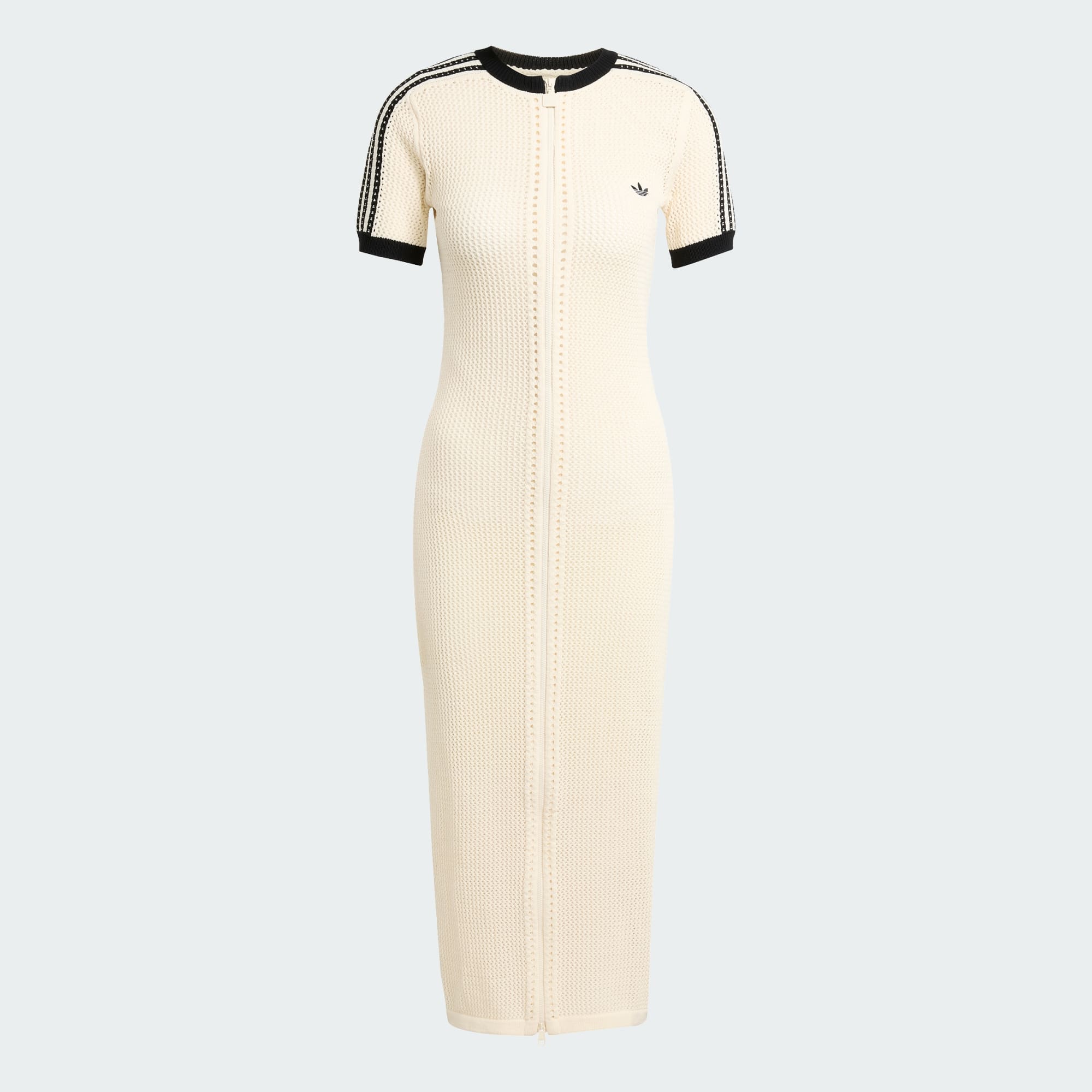 Tieto šaty adidas sú perfektnou kombináciou športového a elegantného štýlu. Vynikajú výraznou háčkovanou konštrukciou, ktorá je jemná, priedušná a ideálna na vrstvenie v horúcom počasí. Ich úzky a dlhý strih obopína postavu a dodáva im nádych sofistikovanosti a vďaka obojsmernému zipsu po celej dĺžke prednej strany si ich môžeš prispôsobiť podľa potreby. Perfektne sa hodia k letným sandálom aj šľapkám, alebo si obleč neviditeľné ponožky a obuj si svoje obľúbené tenisky adidas a môžeš vyraziť.