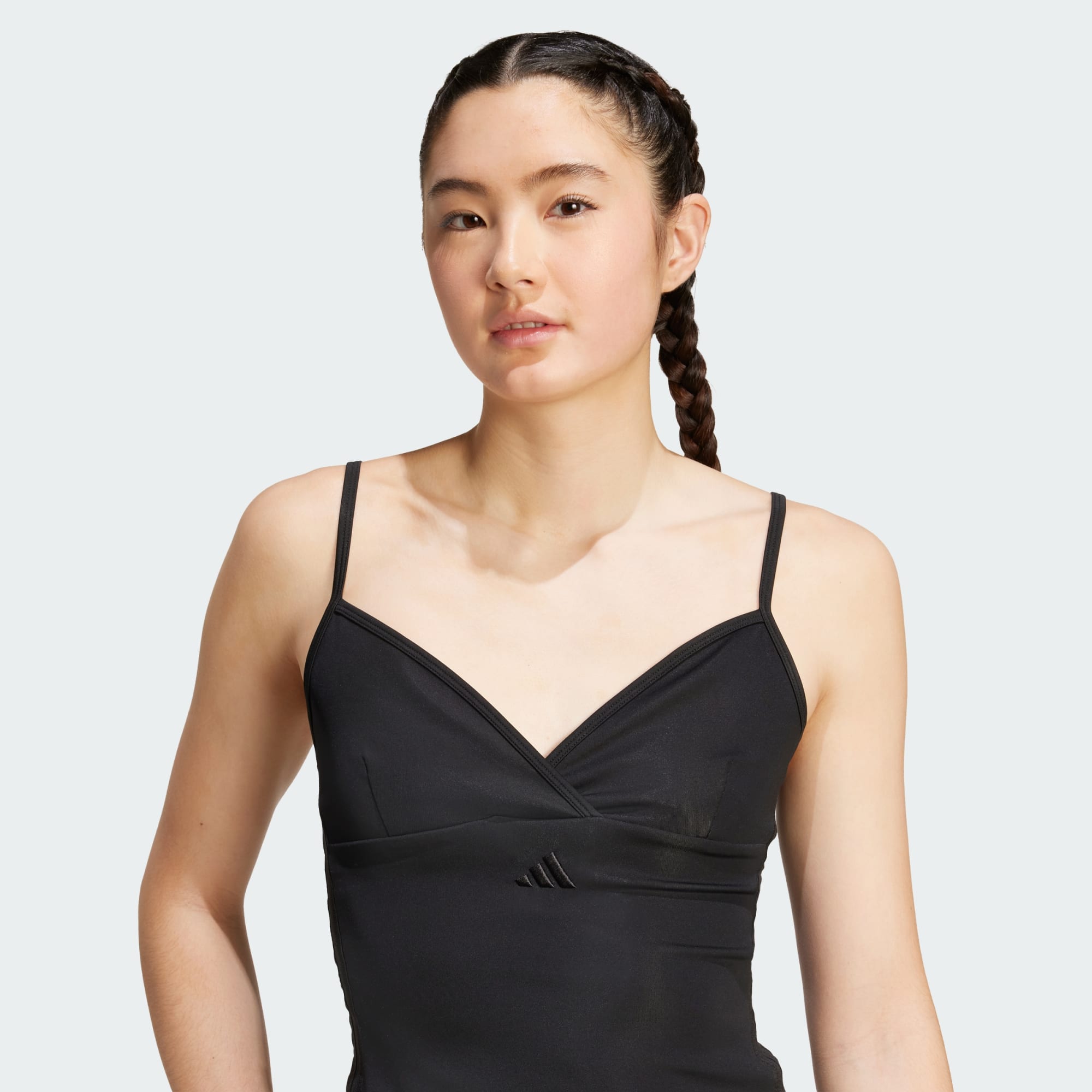 A V-neck tank top with a tight fit.