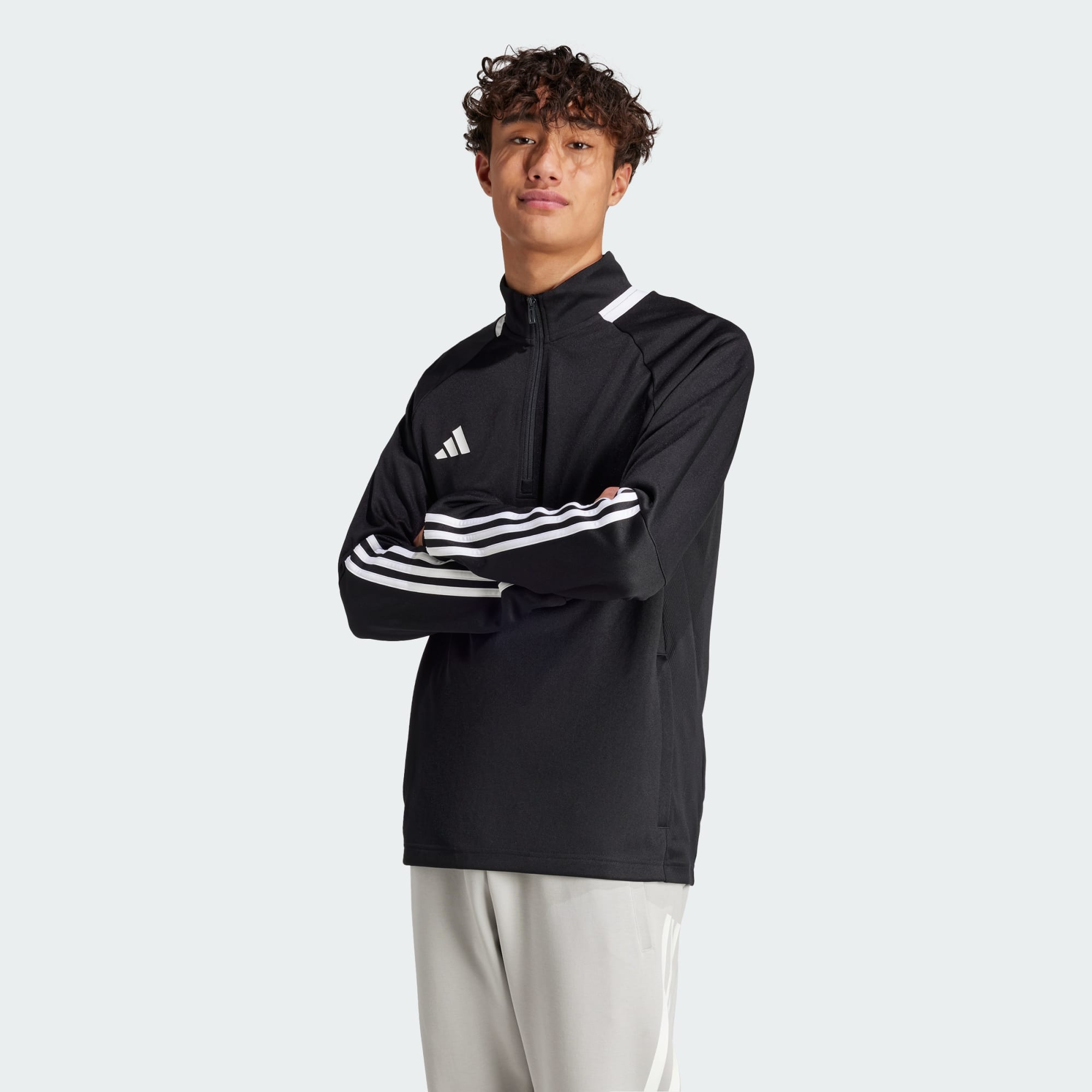- Half zip with stand-up ribbed collar