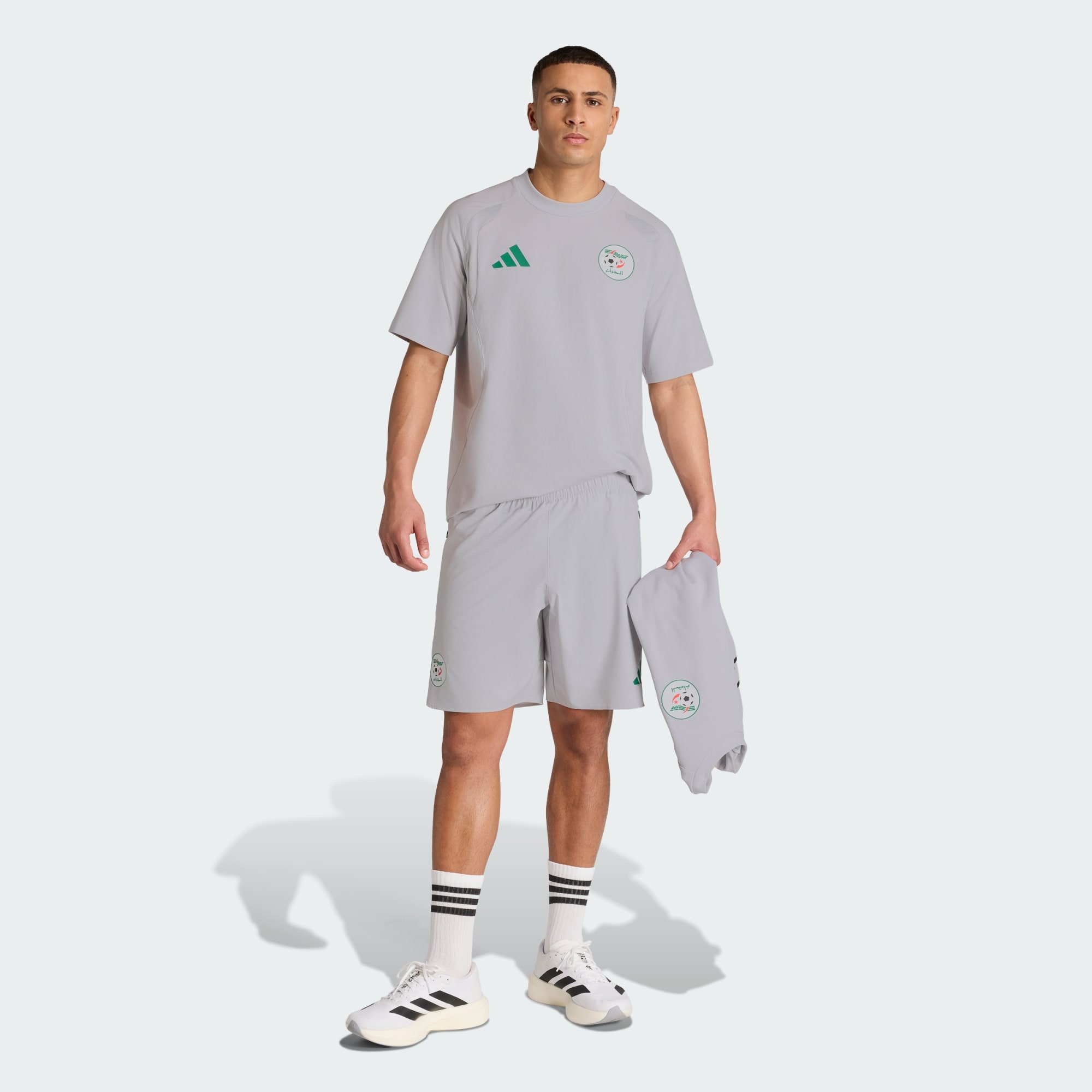 V šortkách Alžírsko Tiro Tech od adidas sa športový dizajn streetového oblečenia spája s pouličným štýlom. Tieto šortky Algeria Tiro Tech spájajú minimalistický funkčný štýl moderného športového oblečenia so strihom a pohodlím typickým pre futbal. Farebné detaily vzdávajú poctu alžírskemu národnému tímu a anatomicky tvarovaný strih zaručí voľnosť pohybu pri tréningu aj v bežný deň. Pás so šnúrkou na stiahnutie umožňuje nastavenie modelu, takže tieto šortky Algeria Tiro Tech sú pohodlným a štýlovým spôsobom ako fandiť Alžírsku v deň zápasu aj po ňom. Šortky Alžírsko Tiro Tech sa dajú nosiť s inými kúskami z kolekcie alebo v kombinácii s obľúbenými kúskami šatníka a sú praktickým módnym doplnkom športového šatníka.