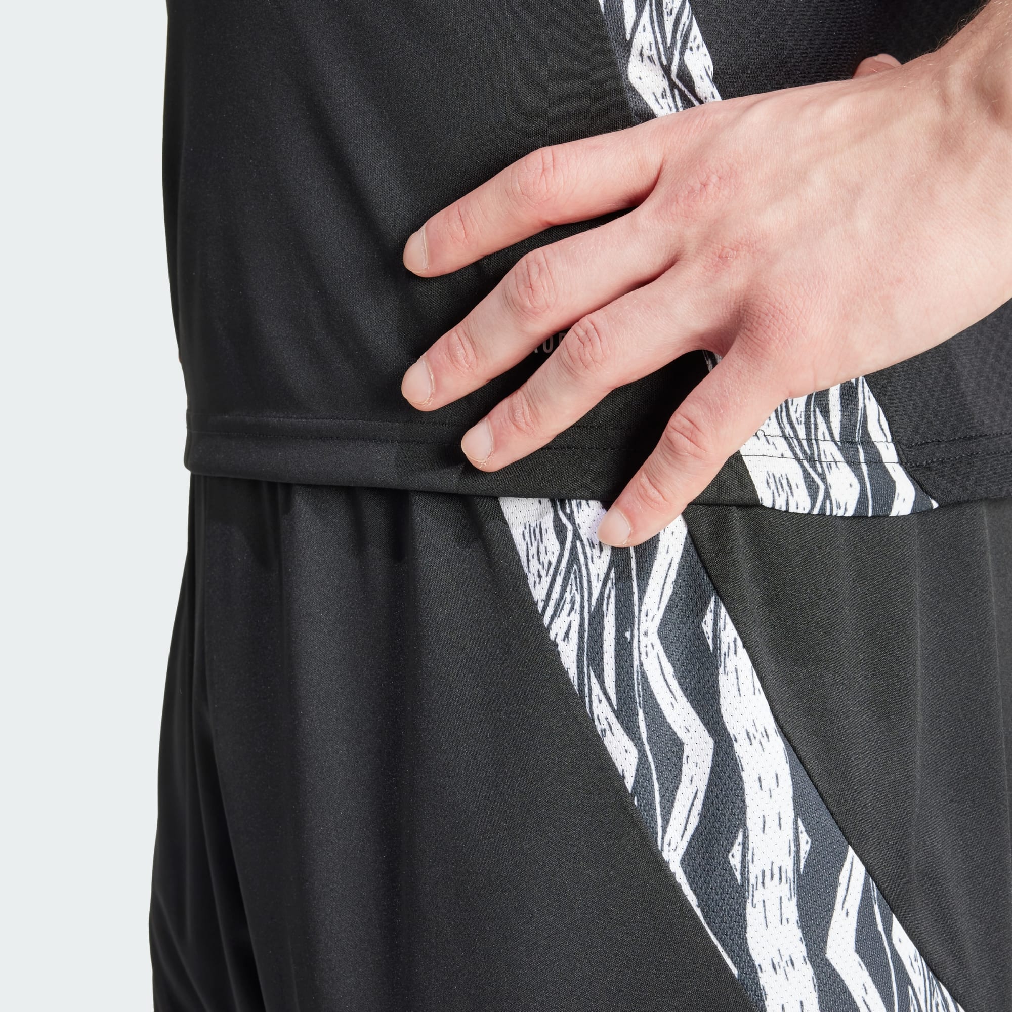 Fanúšikovské šortky v hosťovských farbách vyrobené z recyklovaných materiálov s absorpčnou úpravou.