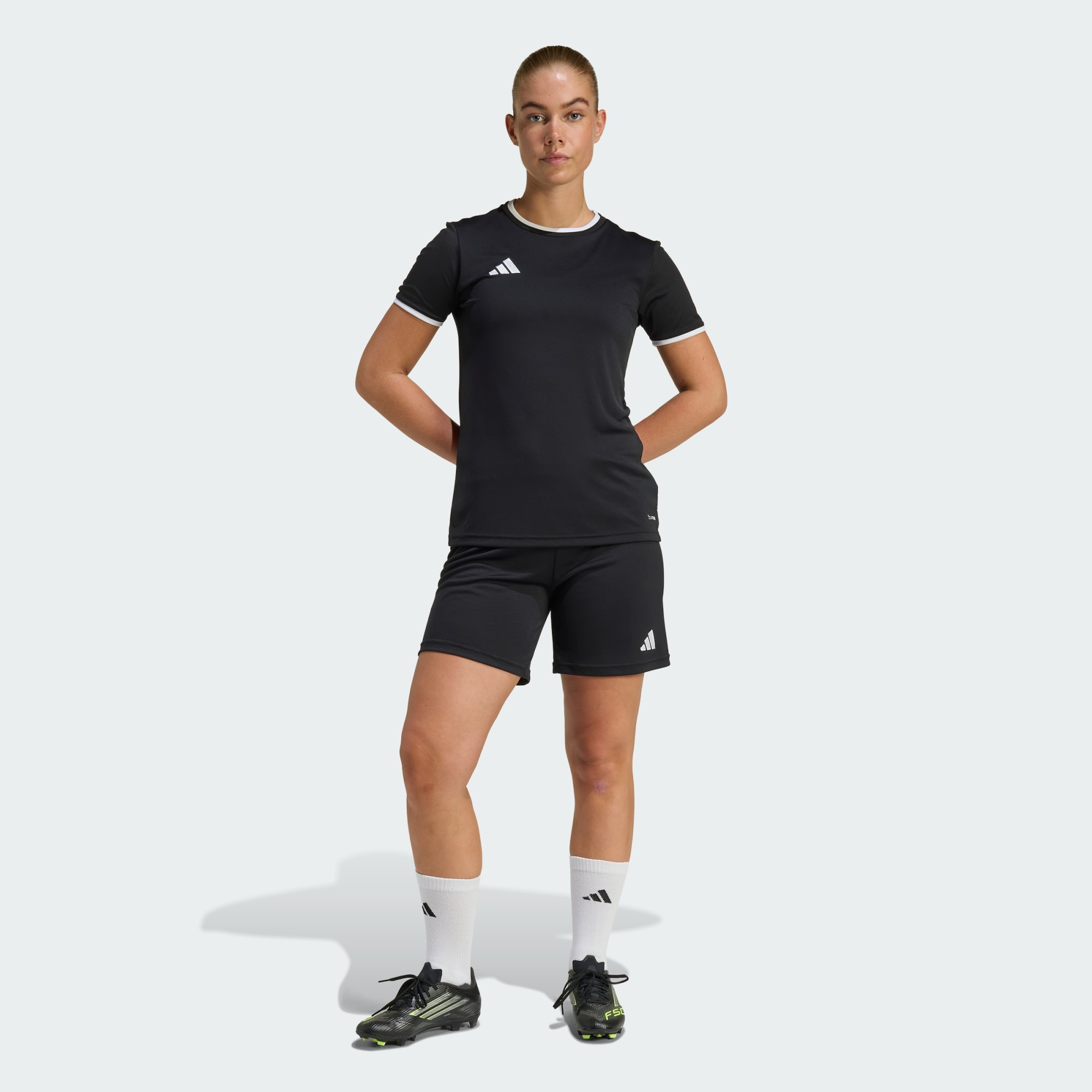 Predstavujeme šortky Entrada26, v ktorých sa jednoduchosť snúbi s funkčnosťou. Tieto šortky s nenápadným dizajnom navrhnuté pre futbalových nadšencov vám umožnia sústrediť sa na hru a vyšívané logo Badge of Sport dodá vášmu vzhľadu nádych klasického štýlu adidas. Vychutnajte si výhody technológie Climacool. Odvádza a pohlcuje vlhkosť, a tak vám pri podávaní výkonov nebude teplo, budete v suchu a nič vás nebude rozptyľovať. Ak si ich prispôsobíte vďaka šnúrke na stiahnutie, získate individuálny strih. Tieto šortky z jemného úpletu sú odolné a jemné na dotyk. Stredne vysoký pás poskytuje optimálne krytie a pohodlie. Sú dostupné vo veľkostiach pre vysokých ľudí a majú pohodlný strih vhodný pre širšiu paletu postáv. Či už máte zápas alebo trénujete, tieto šortky vám pomôžu cítiť sa pohodlne a pripraviť sa na akciu. Oblečte si tieto šortky, v ktorých z vás bude vyžarovať futbalový duch, a využite každý moment na ihrisku naplno.