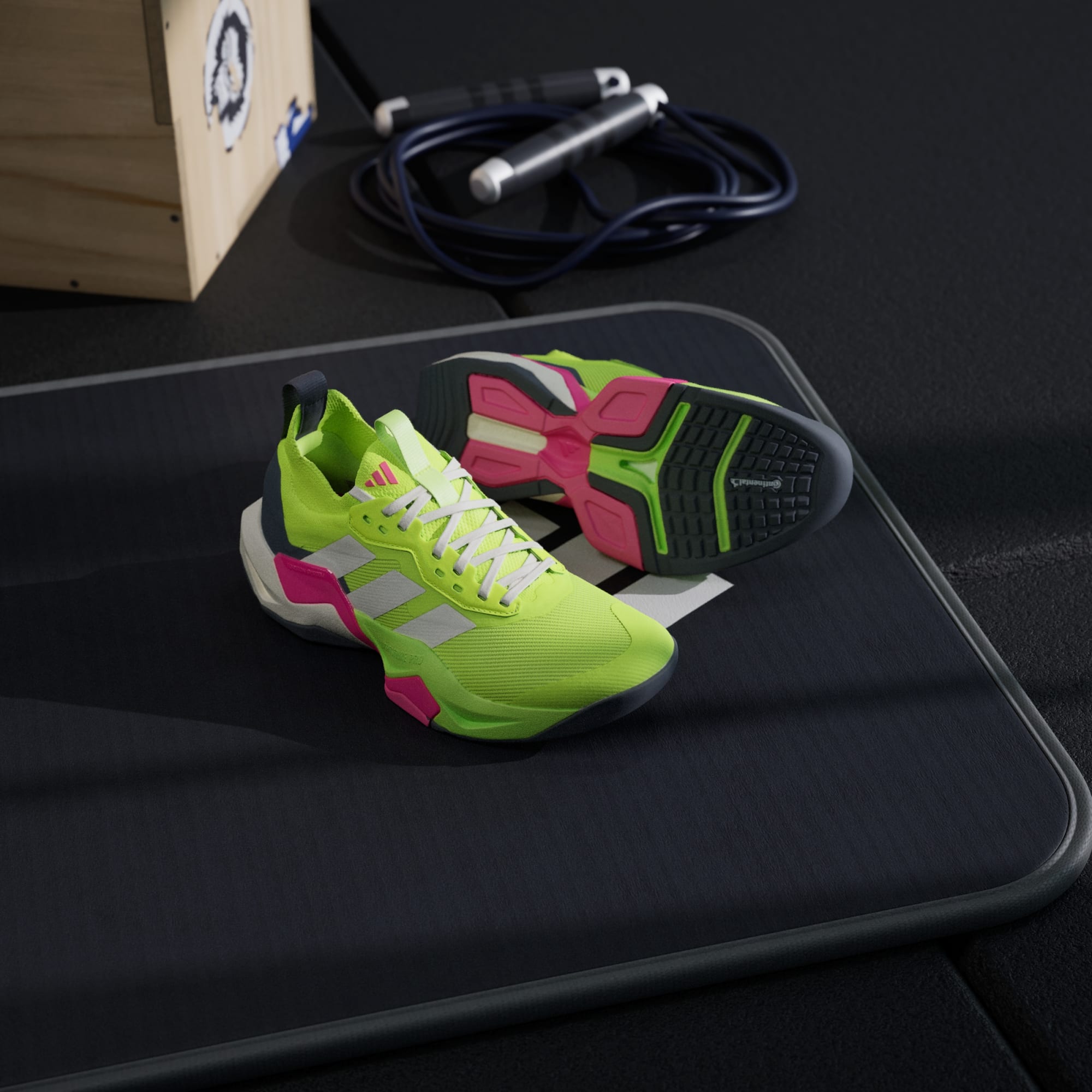 Podrážka z gumy Continental zaručuje spoľahlivú priľnavosť a dynamickú stabilitu na podlahe v štúdiu. Mechanicky tkaný sieťovinový zvršok je priedušný, spevňuje chodidlo a perfektne sa hodí na výpady do strán, explozívne výskoky a rýchle zmeny smeru.