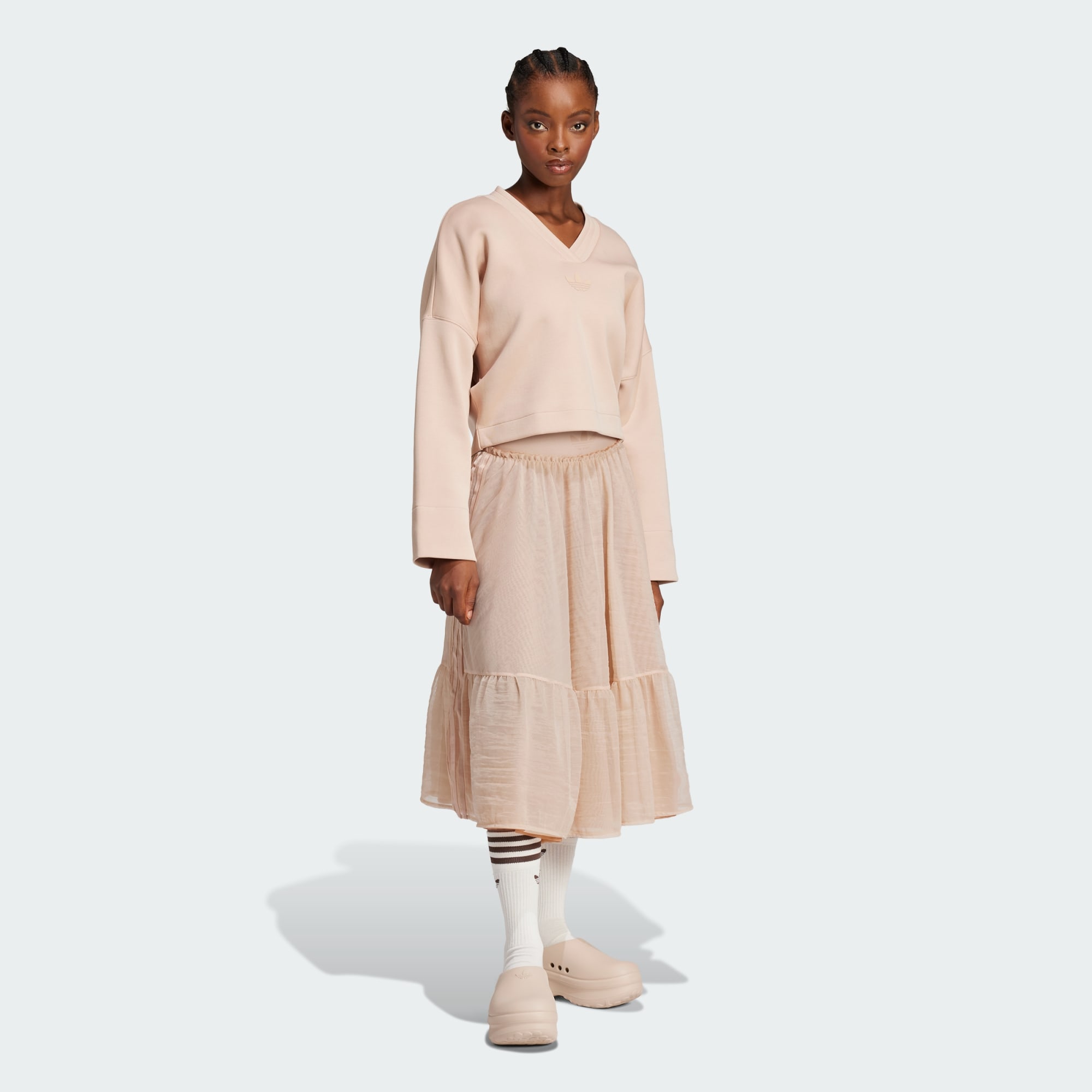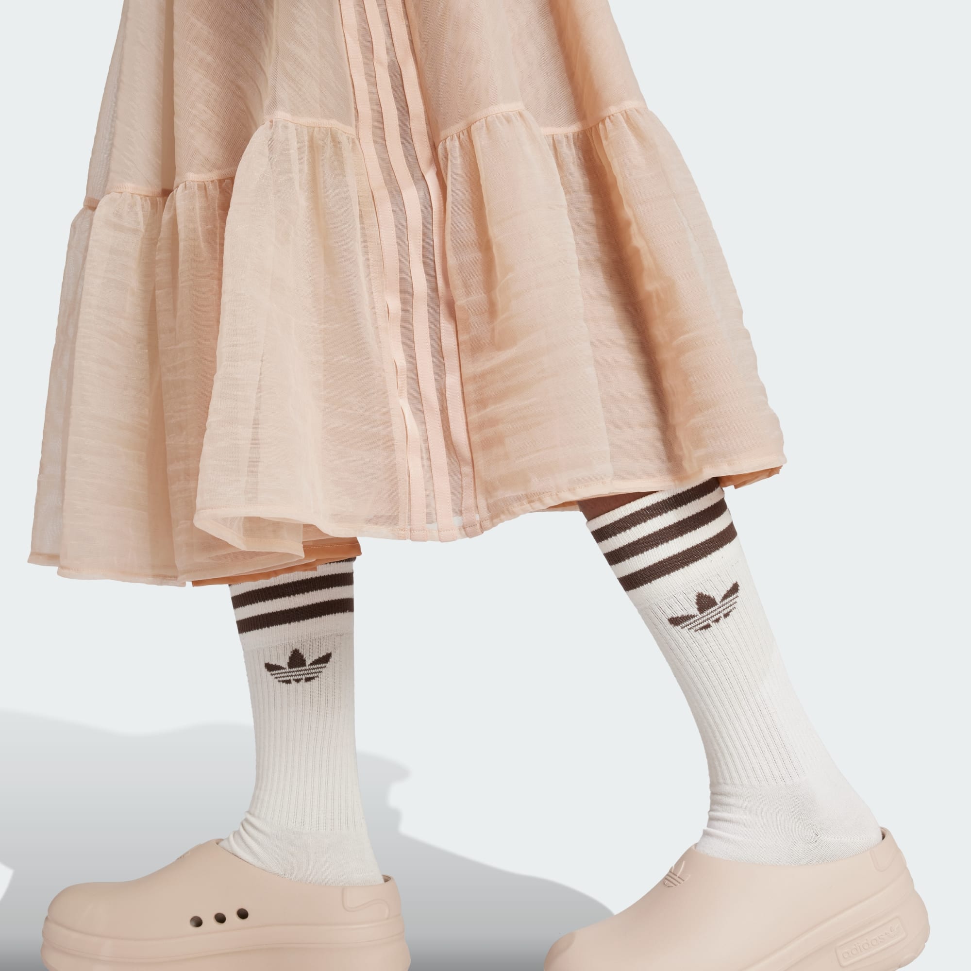 V tejto sukni adidas zanecháš dojem. Je vyrobená z ľahkých vrstiev tylu, ktoré krásne kopírujú každý tvoj pohyb, a jej dramatický vzhľad ešte viac podčiarkuje maxi dĺžka. Skombinuj ju s jednoduchým tričkom a vytvor si elegantný look, ktorý sa nedá prehliadnuť.