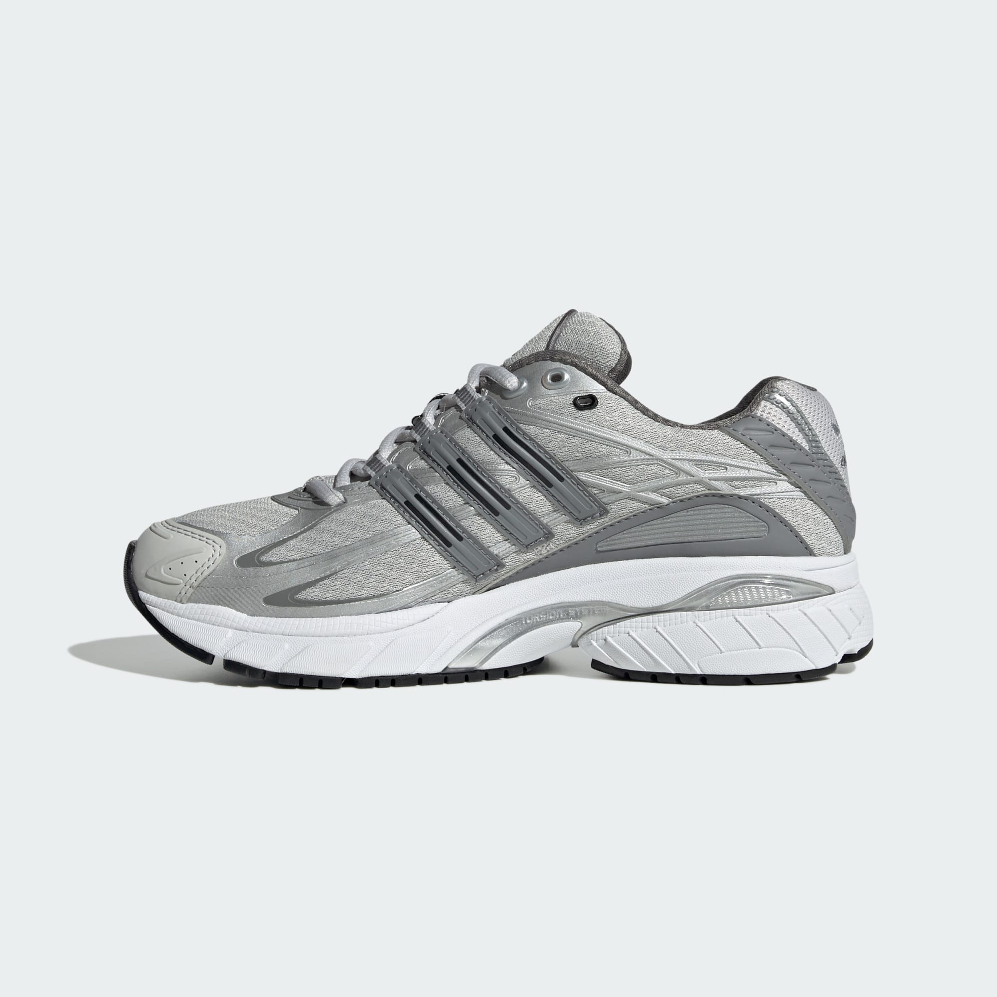 Retro futuristický dizajn týchto tenisiek je inšpirovaný kultovým modelom zo začiatku tretieho tisícročia, ktorý dopĺňa priliehavý sieťovinový zvršok a tlmené metalické akcenty. Mierne lesklé vrstvy spoločne s metalickými detailmi vytvárajú celkový lesklý efekt. Nesú sa na responzívnej tlmiacej medzipodrážke Adiprene, ktorá ti zabezpečí celodenné pohodlie.