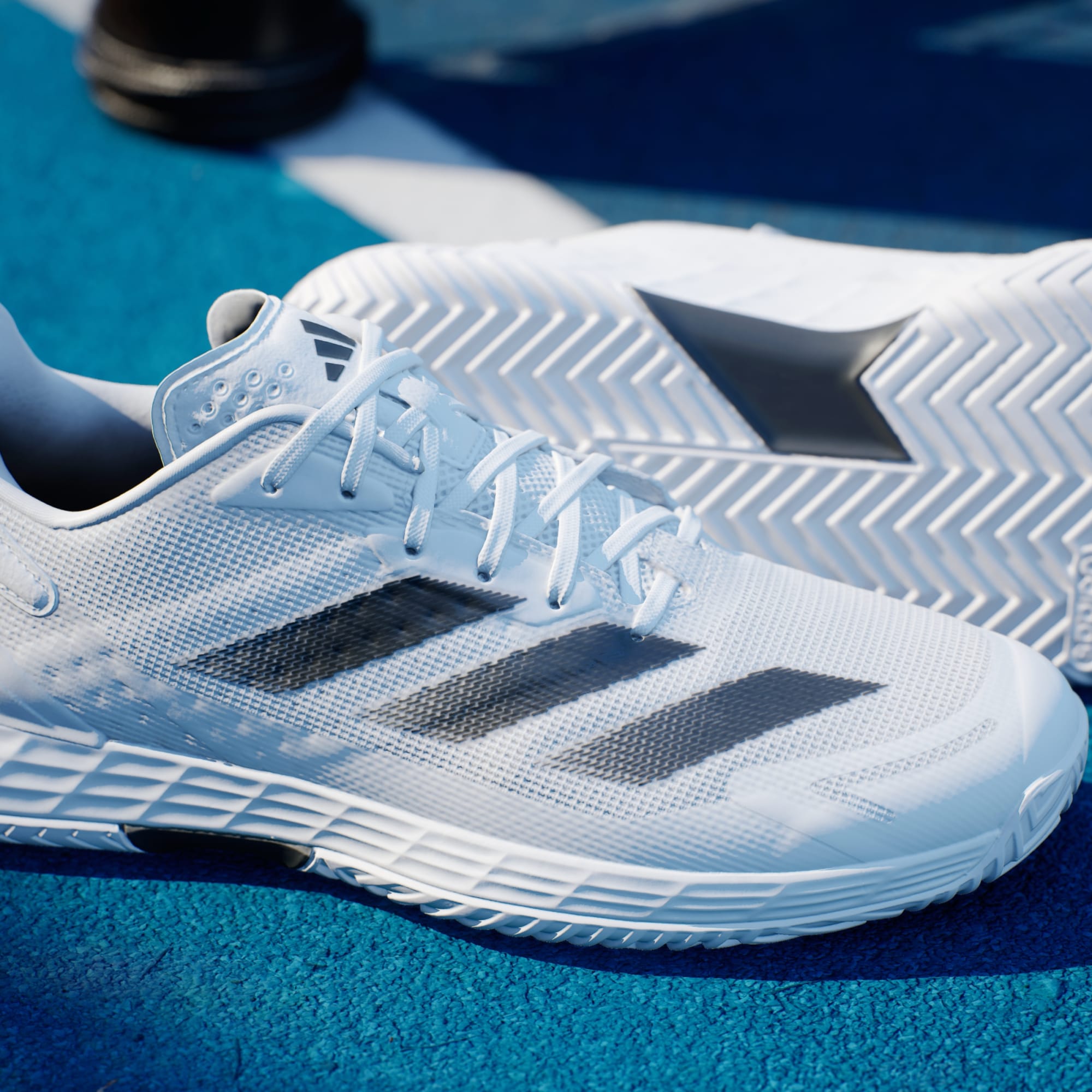 Tieto tenisky adidas spájajú všetky nevyhnutné prvky na bleskový pohyb, od strategicky umiestneného tlmenia pod chodidlom až po odolnú podrážku. Vyznačujú sa medzipodrážkou Lightstrike, ktorá absorbuje nárazy pri dopadoch a zlepšuje kontakt s povrchom, majú priedušný sieťovinový zvršok a vďaka materiálu TPU na päte sedia ako uliate. Tak neváhaj a dominuj pri sieti, alebo hravo lietaj z jednej strany ihriska na druhú. Tento produkt obsahuje minimálne 20 % recyklovaných materiálov. Opätovné využitie materiálov nám pomáha redukovať odpad, menej sa spoliehať na vyčerpateľné zdroje a znižovať uhlíkovú stopu produktov, ktoré vyrábame.