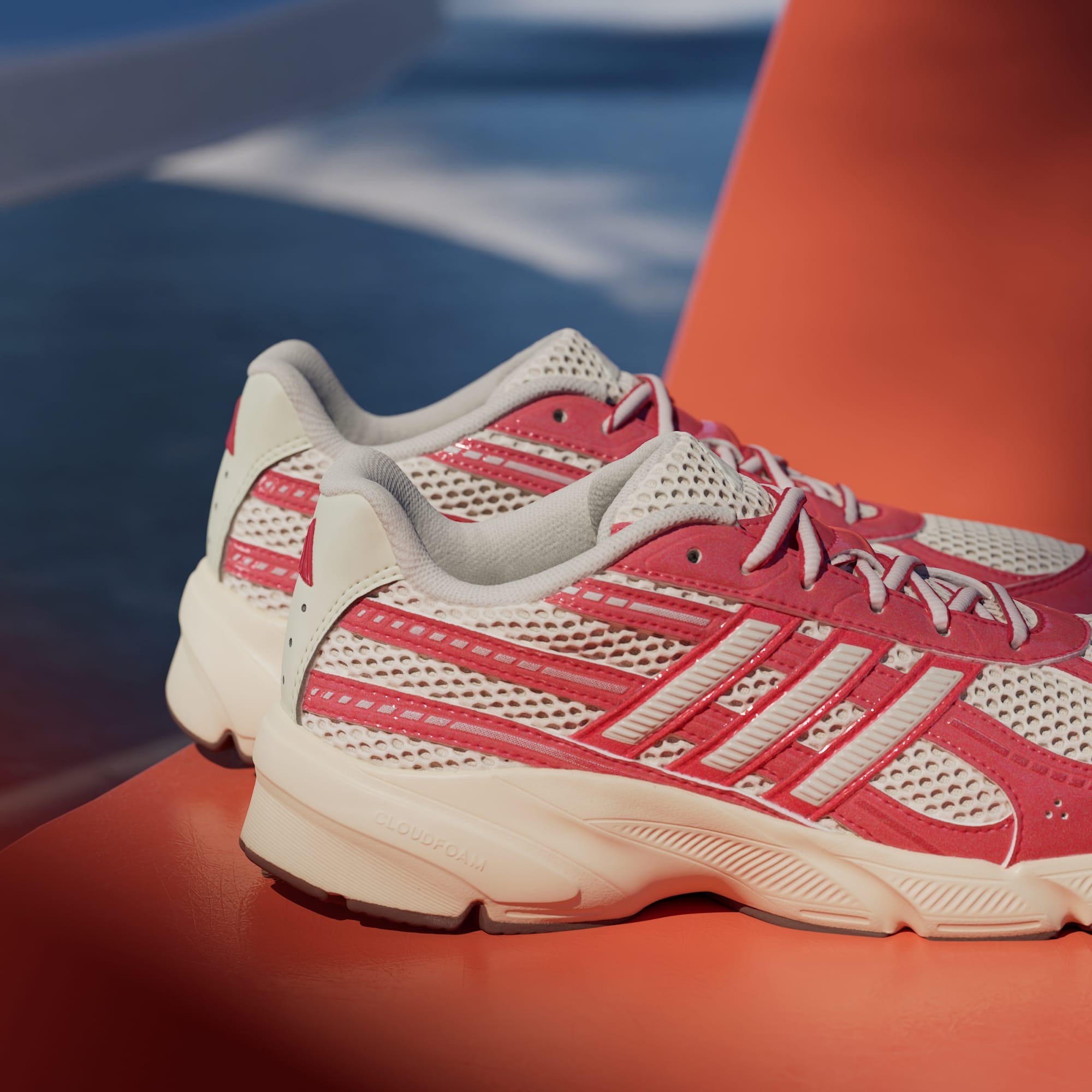 Zvršok z priedušnej sieťoviny príjemne chladí chodidlá, zatiaľ čo syntetické vrchné vrstvy prispievajú k odolnosti a štýlu. Mäkká a pružná medzipodrážka Cloudfoam ponúka extra tlmenie od prvého kroku