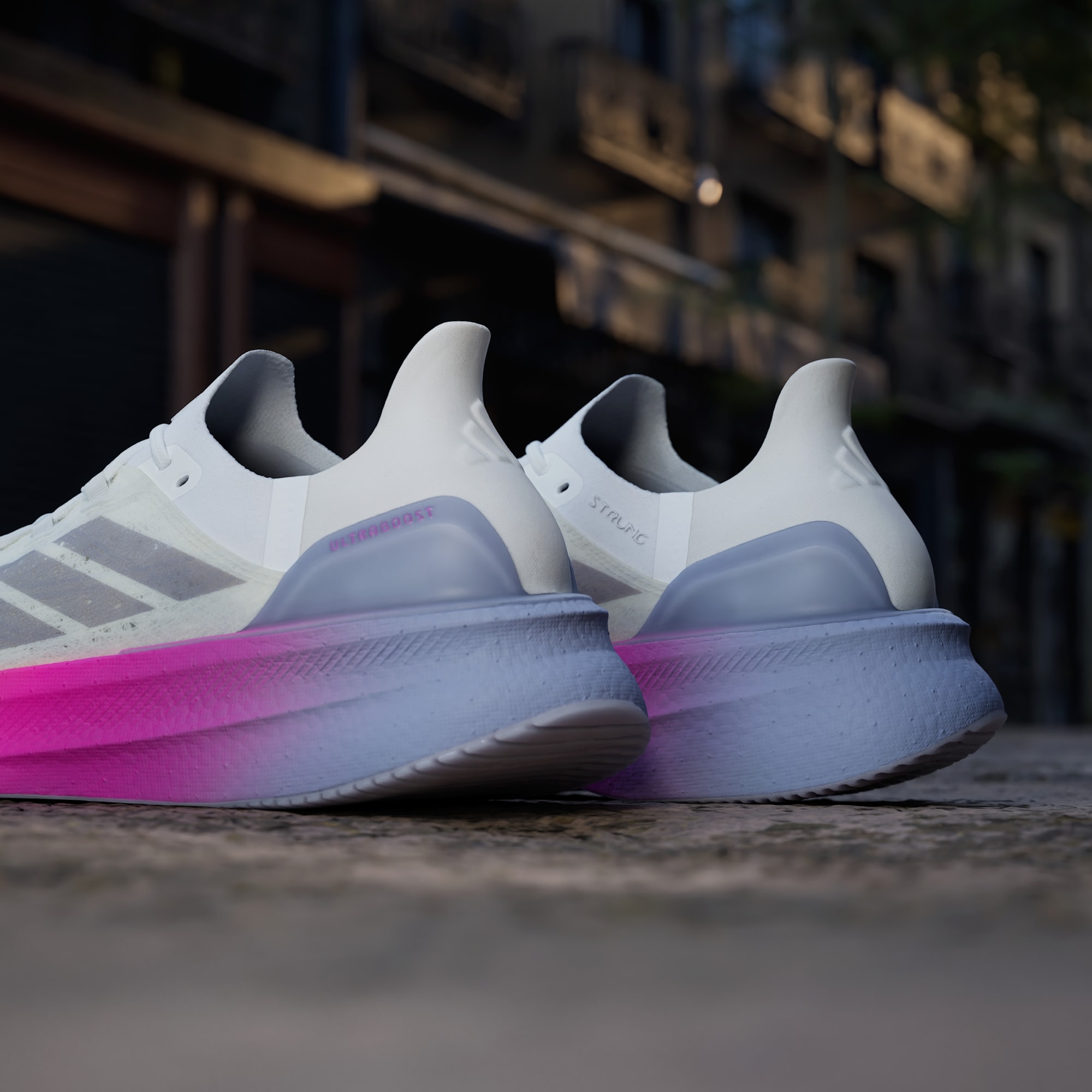 Budúcnosť úpletu. Tenisky adidas Ultraboost 5 Strung majú unikátny zvršok, ktorý bol premyslený vlákno po vlákne, aby poskytoval odolnosť, spevnenie a pružnosť tam, kde to najviac potrebuješ. Sú superľahké a majú medzipodrážku Light BOOST, ktorá pri behu obnovuje energiu a s každým krokom ti pomáha napredovať.