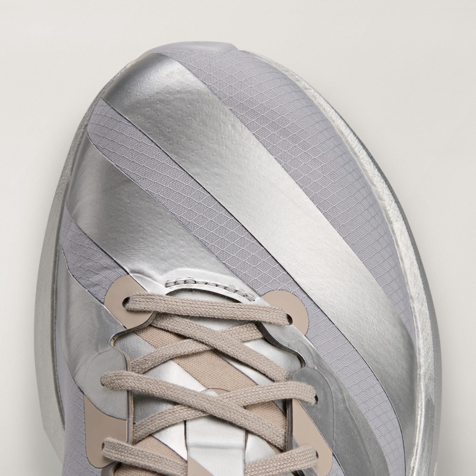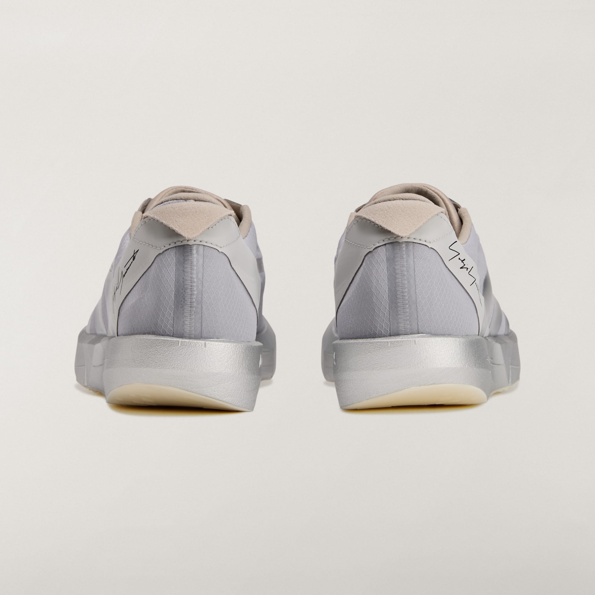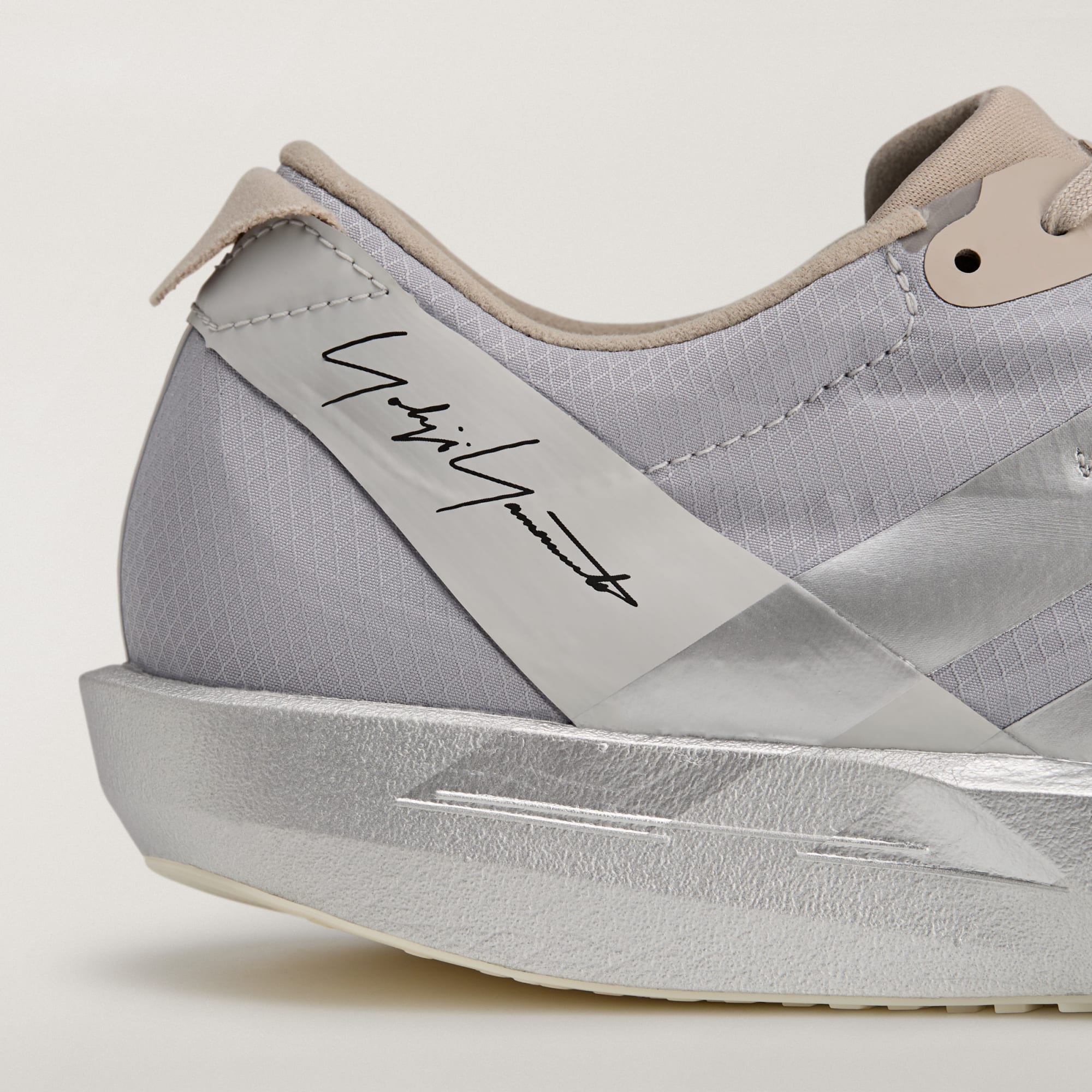 Podpis Yohji Yamamoto na päte dodáva topánkam elegantný a autentický vzhľad. Jedinečné 3-prúžky, ktoré sa tiahnu od bočnej medzipodrážky až po vnútornú stranu, dodávajú tomuto jedničnému páru moderný vzhľad.
