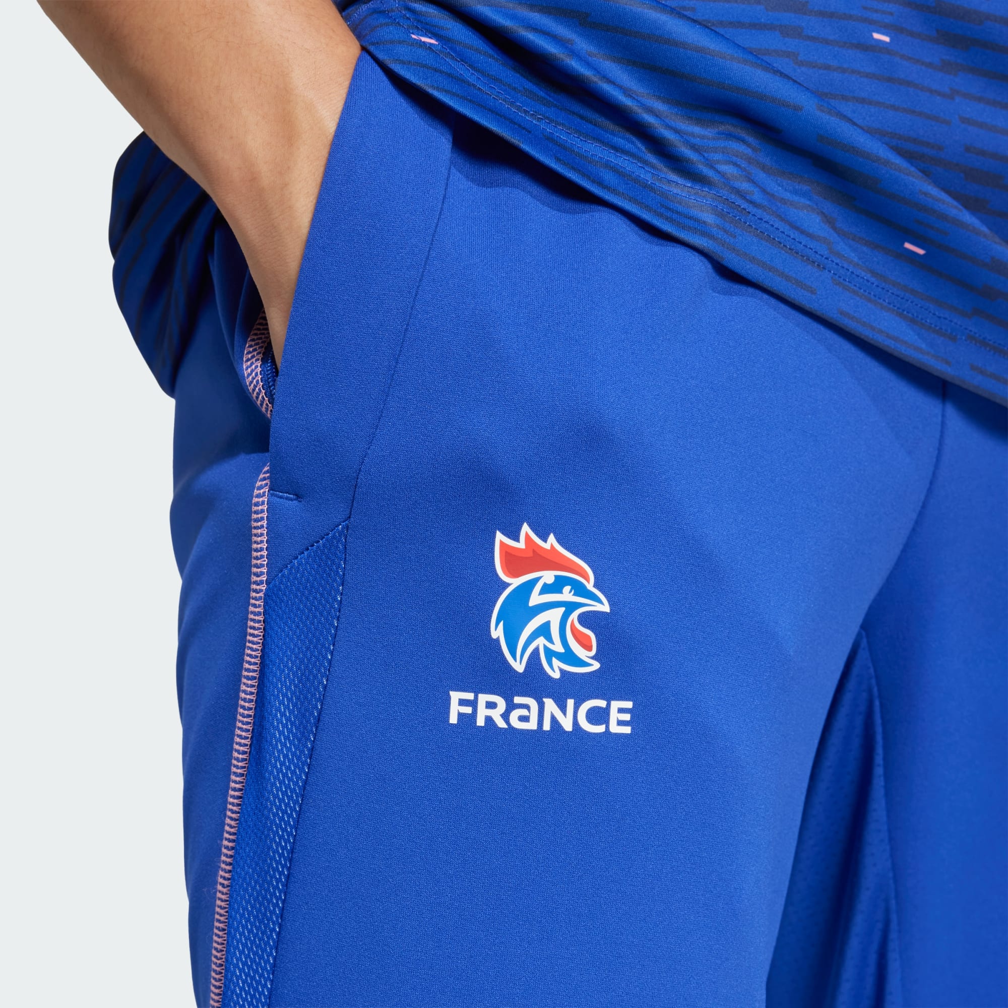 Úzke tréningové tepláky francúzskeho tímu vyrobené z recyklovaných materiálov.