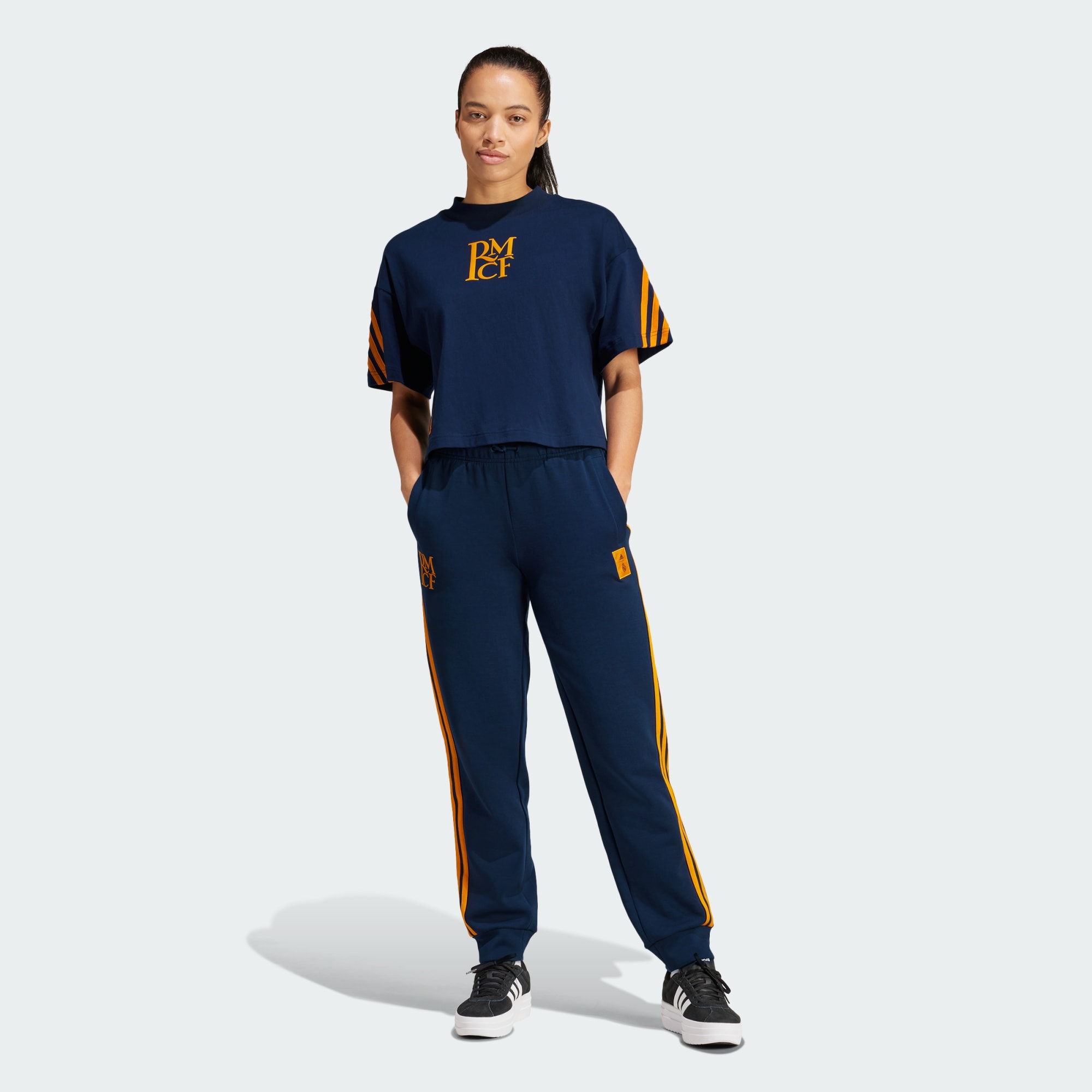 Predveď sa v týchto teplákoch Realu Madrid od adidas na domácej pôde či na cestách. Vďaka jemnému materiálu v nich budeš po celý čas v pohodlí a erb klubu všetkým ukáže, komu držíš palce. A nechýba ani praktický a zároveň odvážny dizajn, takže v nich môžeš vyraziť z ihriska rovno do prírody.