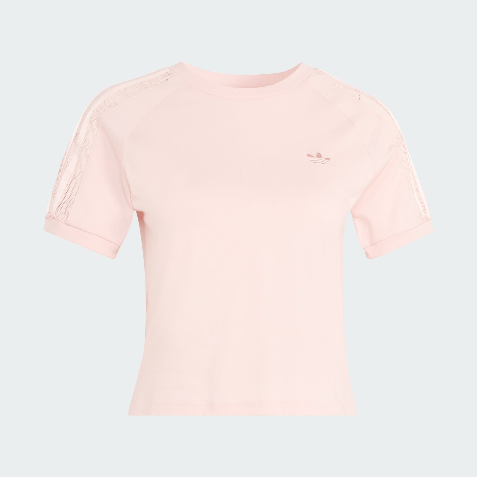 Tričko Lace Cali spája čipku s atletickou eleganciou. Tento kúsok oslavuje rebelského ducha adidas Originals a spája kultové dizajnové prvky s moderným nádychom. Tričko je vyrobené z bavlny typu džersej, ponúka úzky strih, ktorý obopína tvoje telo a vďaka tomu sa budeš cítiť štýlovo aj pohodlne. Okrúhly výstrih, ktorý mu dodáva klasický nádych, z neho robí univerzálny kúsok na rôzne príležitosti. Toto tričko adidas je viac než len obyčajný top. Je to vyjadrenie tvojho štýlu. Prepracované čipkované detaily stelesňujú podstatu športovej ženskosti, vďaka čomu je to skvelá voľba pre tie, ktoré sa odvážia vzdorovať všednosti.