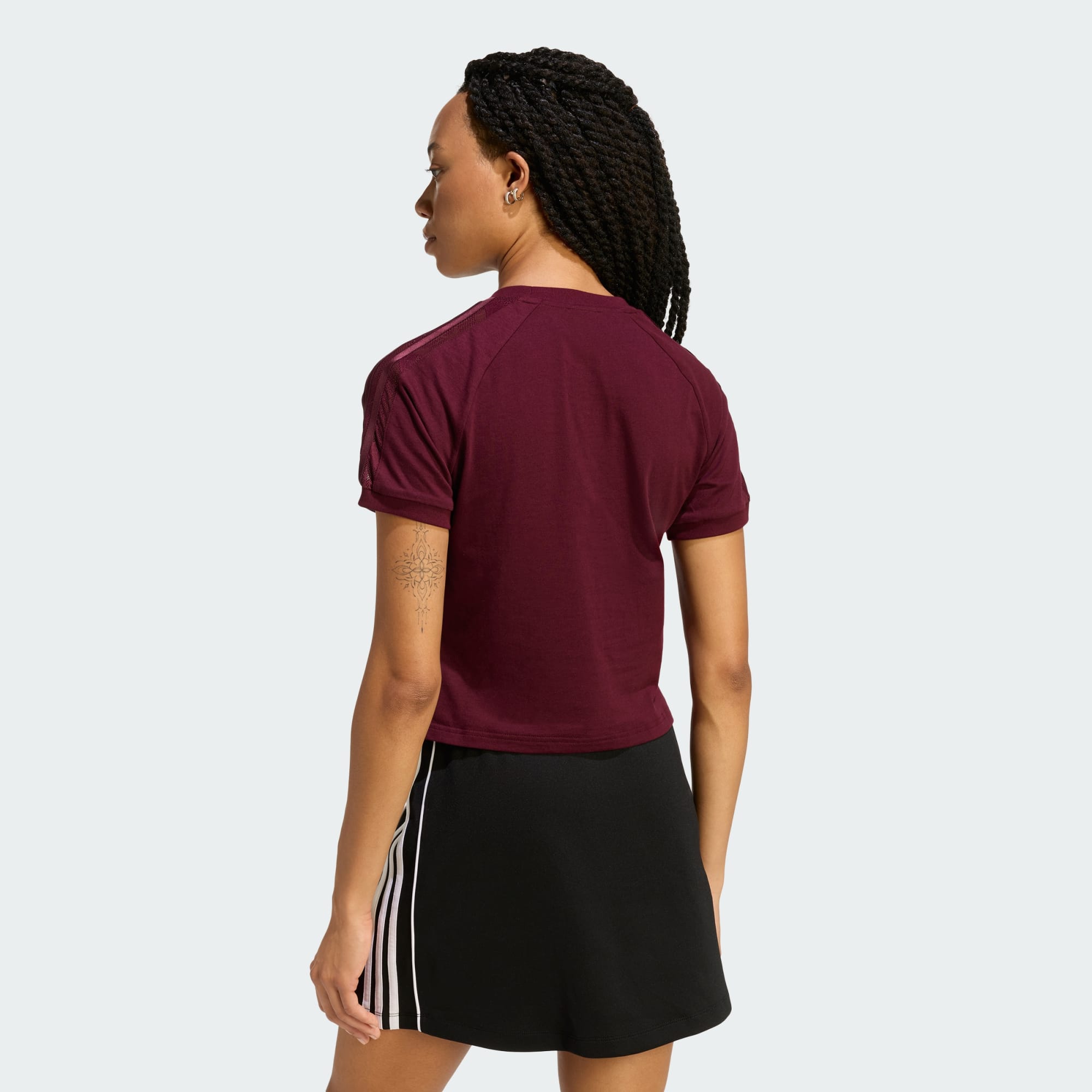 Tričko Lace Cali spája čipku s atletickou eleganciou. Tento kúsok oslavuje rebelského ducha adidas Originals a spája kultové dizajnové prvky s moderným nádychom. Tričko je vyrobené z bavlny typu džersej, ponúka úzky strih, ktorý obopína tvoje telo a vďaka tomu sa budeš cítiť štýlovo aj pohodlne. Okrúhly výstrih, ktorý mu dodáva klasický nádych, z neho robí univerzálny kúsok na rôzne príležitosti. Toto tričko adidas je viac než len obyčajný top. Je to vyjadrenie tvojho štýlu. Prepracované čipkované detaily stelesňujú podstatu športovej ženskosti, vďaka čomu je to skvelá voľba pre tie, ktoré sa odvážia vzdorovať všednosti.