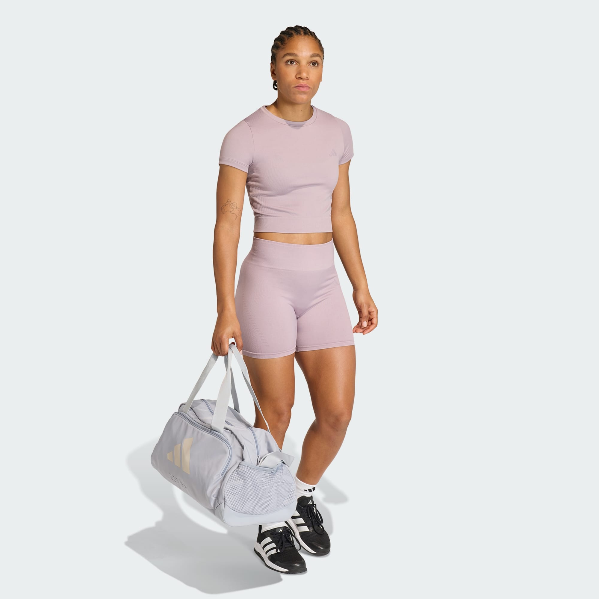 Tričko Workout Essentials Knit Baby je súčasťou kolekcie Seamless Knit od adidas, navrhnuté pre moderný, minimalistický štýl, ktorý prechádza od cvičení v posilňovni k bežnému noseniu. Skrátená silueta poskytuje lichotivý a sebavedomý strih. Tričko je vyrobené z úpletu, ktorý odvádza pot, a má jemné sieťované detaily na lepšiu priedušnosť. Bezšvová konštrukcia poskytuje pohodlie a slobodu pohybu počas tréningu alebo bežných aktivít. Dizajn dopĺňajú kultové detaily adidas: logo Performance vpredu a integrované 3 prúžky na zadnej strane. Toto tričko spája funkčnosť zameranú na výkon s čistým štýlom pripraveným na každodenné nosenie.