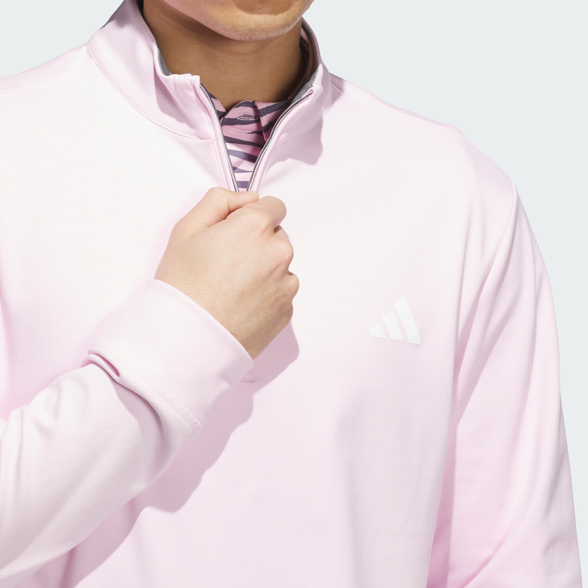 Made for year-round performance with clean, classic course style, this adidas golf quarter-zip top is a versatile layer for early mornings and cool days on any course. A stand-up collar seals in heat when zipped, and soft, stretchy interlock fabric lets you bend and twist without restriction.