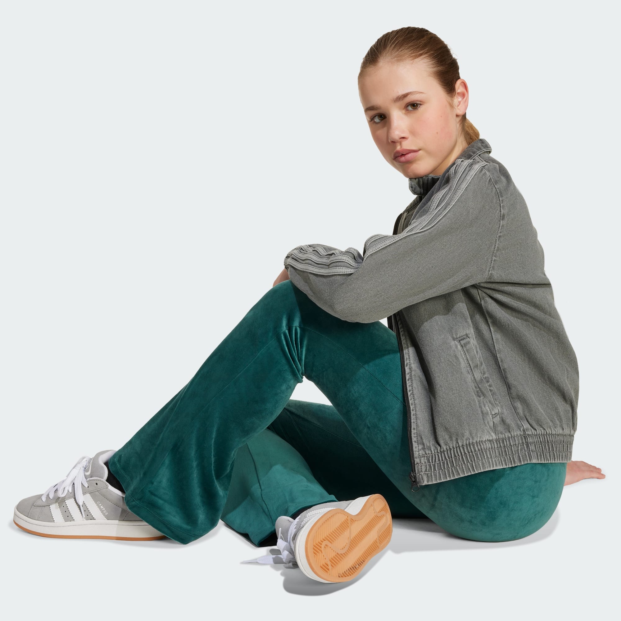 Tieto juniorské tepláky od adidas majú neprehliadnuteľný dizajn. Velúrový materiál je jemný a príjemný, ideálny na dni doma alebo večery vonku. Skombinuj ich so svojím obľúbeným skráteným tričkom a nadrozmernou bundou denim pre nenútený, štýlový vzhľad. Vyšívaný trojlístok na sáre vzdáva hold športovému štýlu.